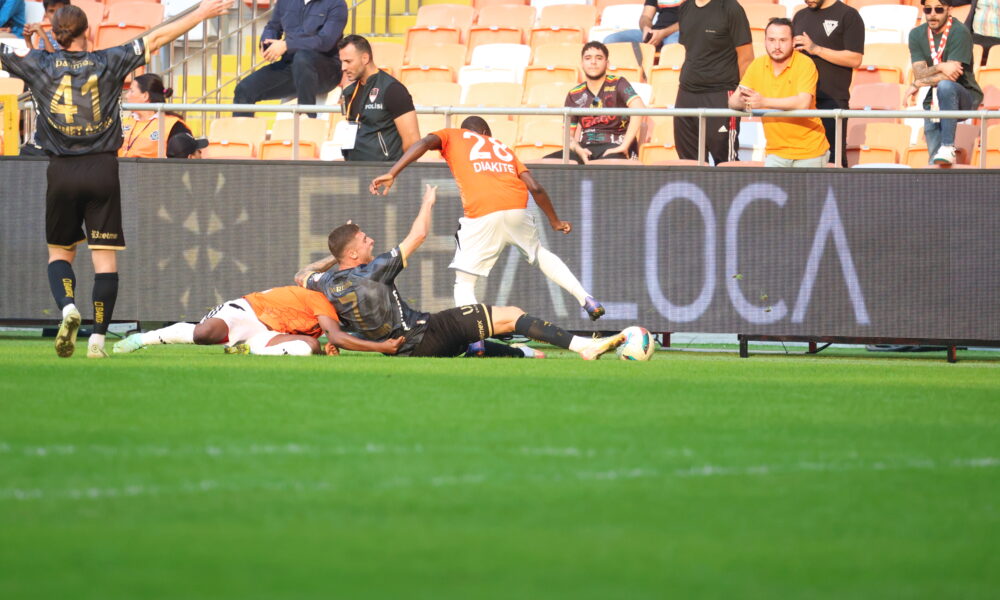 63üncü dakikada sağ kanattan atağa çıkan Adanasporda Diakite, çalımlarla rakip ceza sahasına sokuldu. Çaprazdan Diakitenin şutunda savunmaya yardıma gelen Paixao araya girdi ve topu uzaklaştırdı.