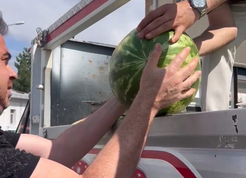 Adıyaman’dan gelen karpuzlar Sivas’ta Gazze’ye yardıma dönüştü