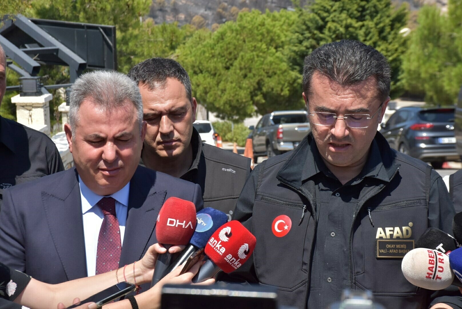 AFAD Başkanı Okay Memiş ve İzmir Valisi Süleyman Elban son dönemde İzmirde ve yurt genelinde çıkan orman yangınlarıyla ilgili Bayraklı Seyir Tepede açıklama yaptı. AFAD Başkanı Okay Memiş, 15 Ağustosta başlayıp İzmir, Manisa, Aydın, Uşak, Muğla, Karabük ve Bolu illerinde etkili olan büyük ölçekli orman yangınlarında en büyük tesellinin yangınlarda herhangi bir can kaybının yaşanmamış olması olduğunu söyledi. AFAD olarak afet öncesinde risk azaltma, afet anında müdahale ve sonrasında iyileştirme süreçlerini ülke genelinde koordine etmekle görevli olduklarını dile getiren Memiş, bu kapsamda orman yangınları sürecinde yangından etkilenen illerde valilik başkanlığındaki Afet ve Acil Durum Yönetim Merkezlerinin 7/24 esasıyla çalıştığını kaydetti. Memiş, “Diğer tüm illerde başkanlığındaki Afet ve Acil Durum Yönetim Merkezlerimiz yangın bölgelerine personel araç gereç desteği vermek üzere teyakkuz halinde görevlerine devam etmektedir. Bu yangınlarda toplam 5 bin 901 personel, 2 bin 533 araç, 450 arazöz, 613 su tankeri ve itfaiye aracı ile 27 uçak, 72 helikopter olmak üzere 99 hava aracıyla müdahale yapılmıştır ve orman yangınlarından etkilenen yerleşim yerlerinde ülke genelinde toplam 4 bin 700 vatandaşımız valilerin koordinesinde güvenli yerlere tahliye edilmiştir” dedi.
