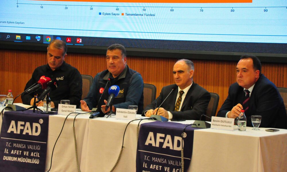 Manisa İl Tarım ve Orman Müdürlüğü toplantı salonunda Manisa Valisi Vahdettin Özkan ve AFAD Deprem ve Risk Azaltma Genel Müdürü Prof. Dr. Orhan Tatar başkanlığında İl Afet Risk Azaltma Planı (İRAP) değerlendirme toplantısı gerçekleştirildi. Toplantıya Vali Özkan ve Tatarın yanı sıra, Manisa Büyükşehir Belediyesi Başkanı Besim Dutlulu, ilçe kaymakamları, kamu kurum ve kuruluşlarının yöneticileri ile İRAP eylemlerinden sorumlu temsilciler katıldı. Prof. Dr. Orhan Tatar, “Eylem ve ilerleme durumlarını gözden geçirmek, iyi uygulamaları, azaltma bakış açısını ortaya koymak amacıyla bu toplantıyı gerçekleştiriyoruz. Sayın Belediye Başkanımız ve Sayın Valimiz de çok net bir şekilde ifade etti. Manisa, afet tehlikelerini bünyesinde en fazla barındıran illerimizden biri. Sadece İRAPa bile baktığınızda, 11 farklı afet türü tanımlanmış. Bunların içinde en fazla kütle hareketleri, sonra meteorolojik afetler ardından deprem geliyor. Endüstriyel kazalardan maden kazalarına, orman yangınlarına kadar birçok farklı afet türüne dair eylemler tanımlanmış” ifadelerini kullandı.