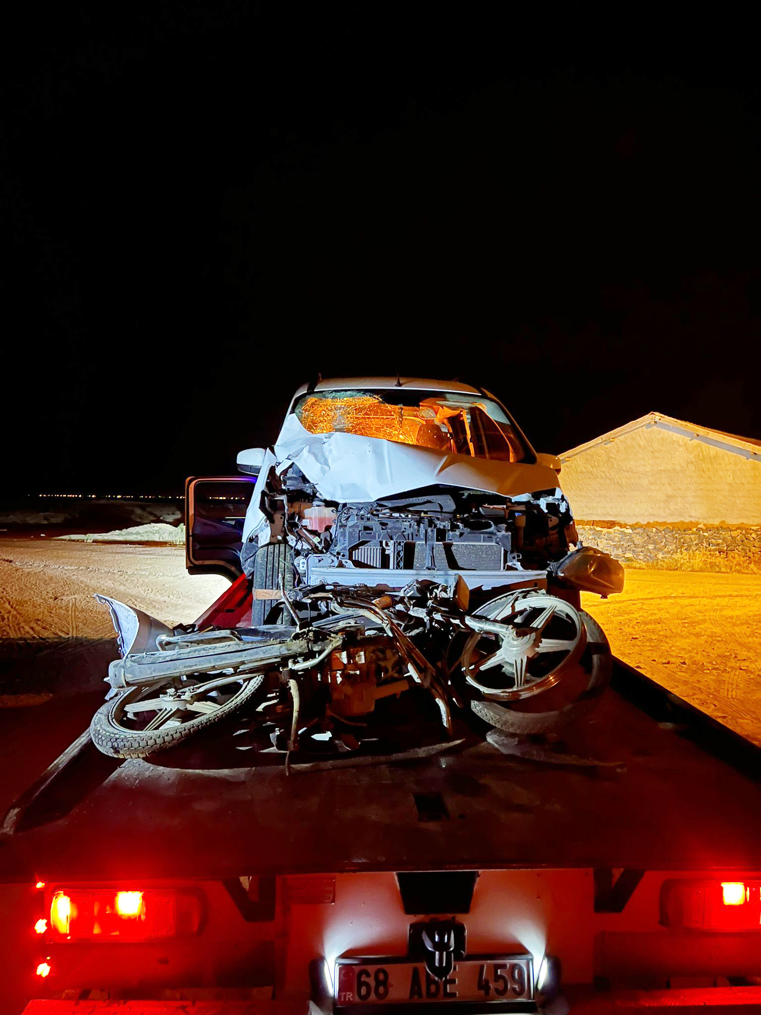 Kaza, dün saat 23.00 sıralarında Aksaray- Konya kara yolunun 10uncu kilometresinde meydana geldi. İsmail D. idaresindeki 68 ABP 699 plakalı hafif ticari araç, Afganistan uyruklu Mohammad Namaz Özbek yönetimindeki plakasız motosiklete arkadan çarptı. Sürücü kaçarken, sürücü Mohammad Namaz Özbek ile motosikletteki eşi Meryem Özbek (32) ve çocukları Ümit Özbek (5) ile Resul Özbek (8) yaralandı. İhbarla kaza yerine sağlık ve jandarma ekibi sevk edildi. Yaralılar, sağlık ekiplerinin müdahalesinin ardından Aksaray Eğitim ve Araştırma Hastanesine kaldırıldı. Mohammad Namaz Özbek, kurtarılmadı. Tedaviye alınan 3 yaralıdan Meryem Özbekin durumunun ağır olduğu öğrenildi. Kaçan hafif ticari araç sürücüsü İsmail D., altına alıp sürüklediği motosikletle girdiği Yapılcan köyündeki pancar tarlasında saklanırken yakalandı. Soruşturma sürüyor.