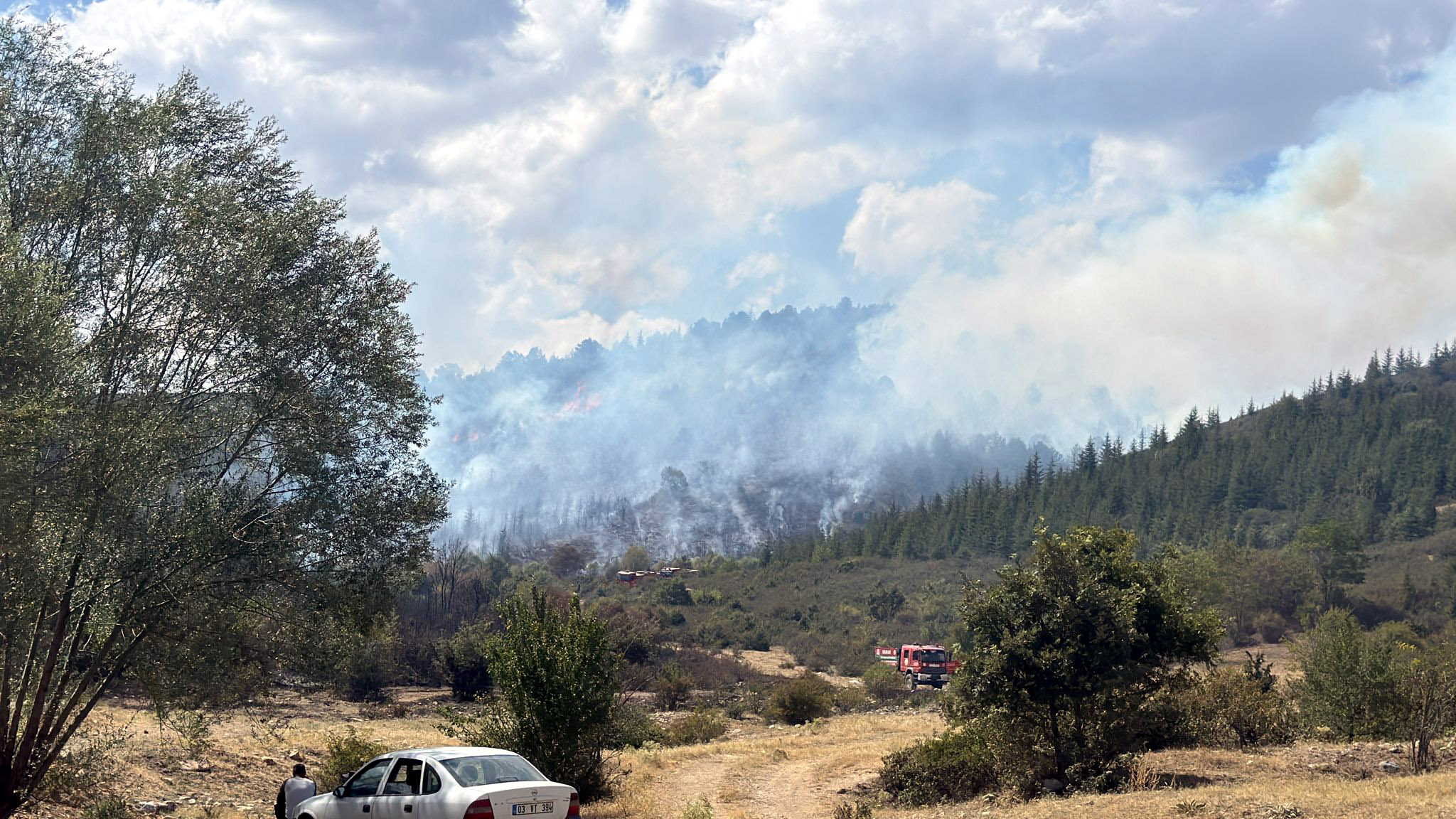 Afyonkarahisar'ın Sandıklı ilçesine bağlı Akharım beldesindeki ormanda yangın çıktı. Fotoğraf:Afyonkarahisar, (DHA)