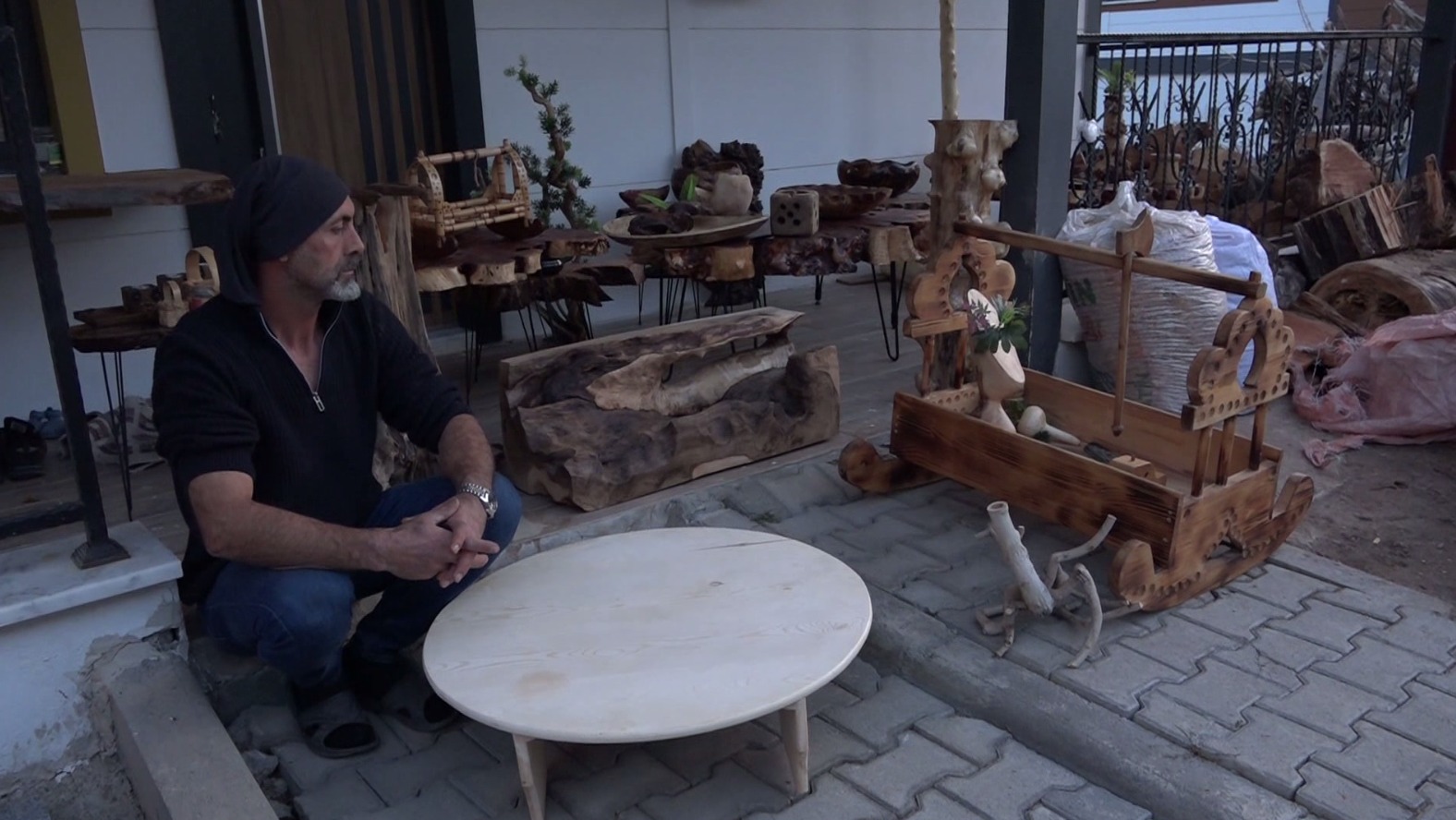 Ağaç parçalarını eşyaya dönüştürüyor; hayali müze kurmak