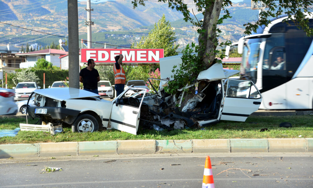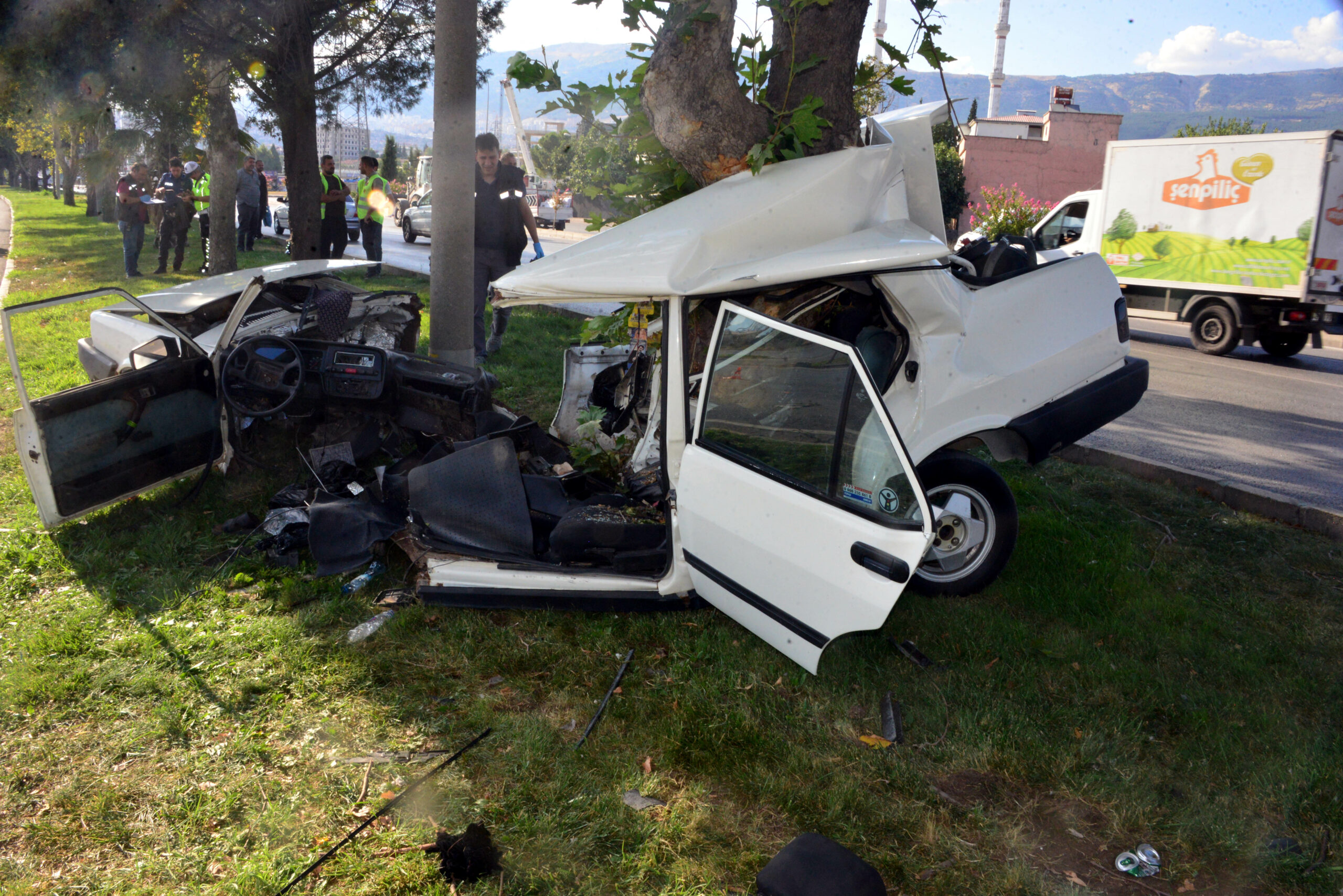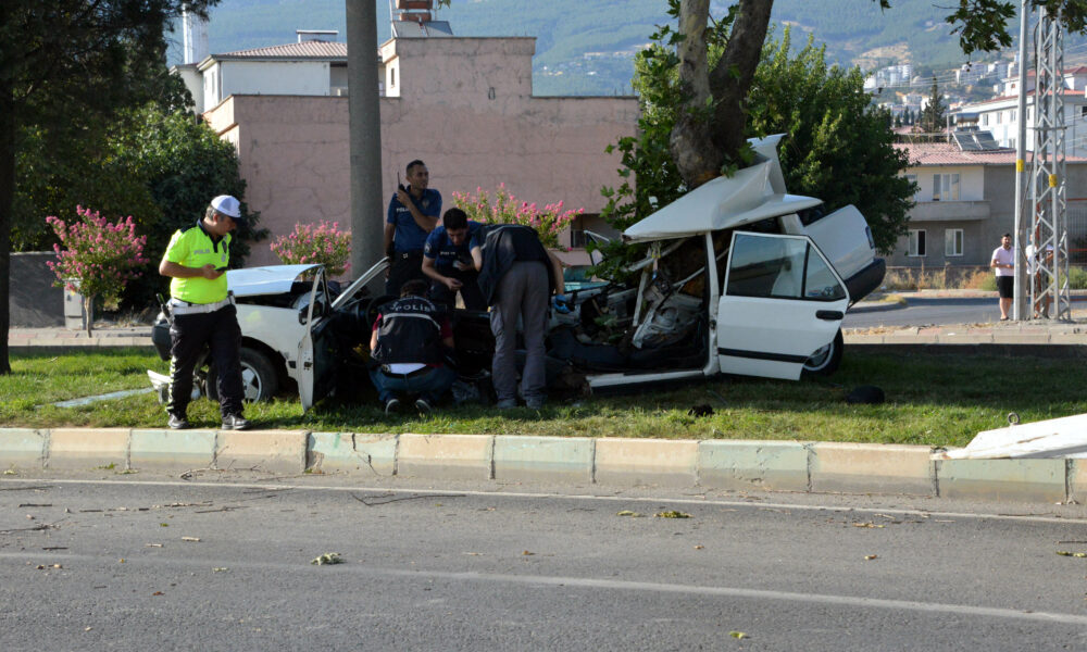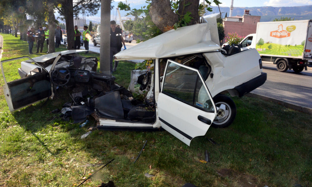 Ağaca çarpan otomobil ikiye bölündü: 1 ölü, 1 yaralı