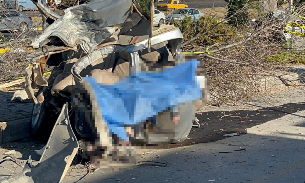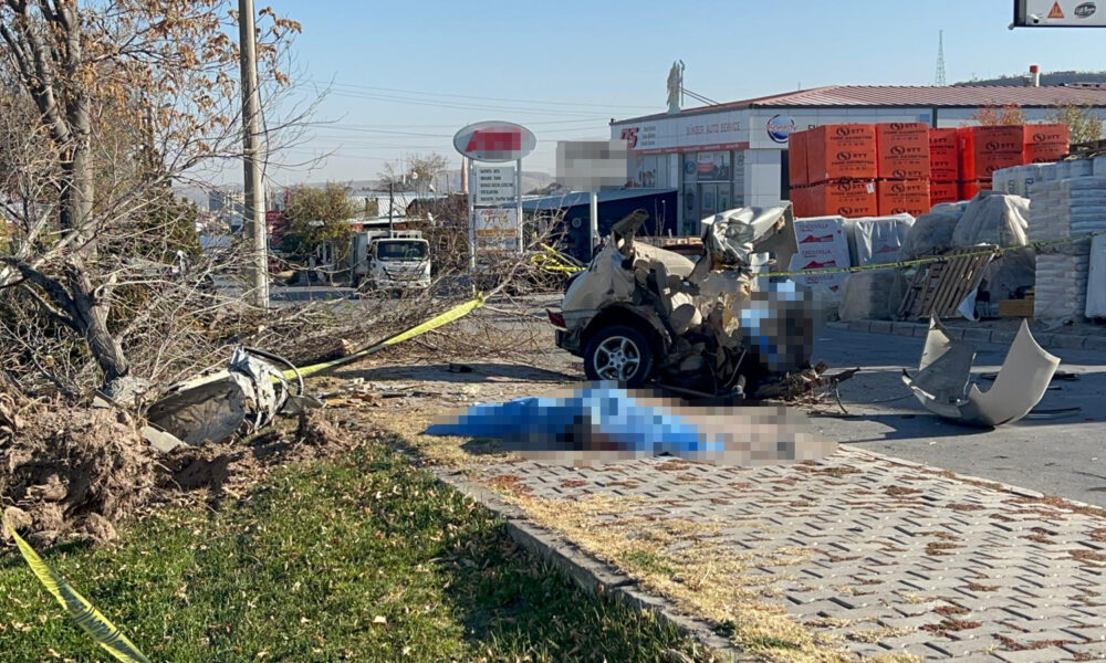 Öte yandan kaza çevredeki bir iş yerinin güvenlik kamerasına yansıdı. Görüntülerde otomobilin refüjdeki ağaca çarpıp ikiye bölündüğü görüldü.