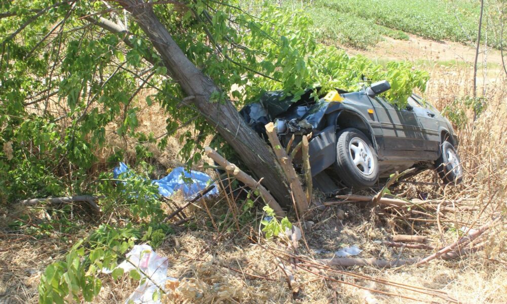 • Manisa'nın Salihli ilçesinde, ağaca çarpan otomobilin sürücüsü Cevdet Gaga (67) ile yanındaki eşi Fahriye Gaga (65), yaşamını yitirdi.Fotoğraf:Emre SAÇLI / Salihli (Manisa),(DHA)