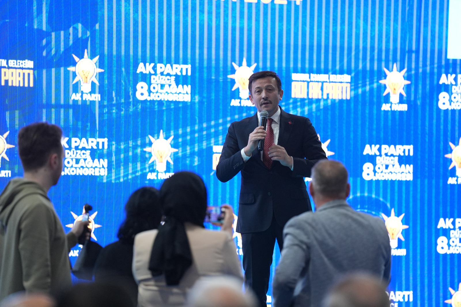 Bakan Bakın ardından konuşan Hamza Dağ, “Dünyanın hiçbir yerinde 23 yıllık bir siyasi partinin 22 yıl iktidarda kaldığı, girdiği her seçimi kazandığı başka bir ülke yok. Bu 23 yılı şöyle özetliyorum. Bu 23 yılda birçok badire yaşadık, yılmadık. Birçok sorun ve sıkıntı yaşadık. Bizi yıkmak istediler. AK Parti ile birlikte Türkiye Cumhuriyetini yıkmak istediler. Burada gençler, direklere bayrak asmaktan yorulmadı. Hanım kardeşlerimiz ev ev, gezmekten yorulmadı. Milletvekillerimiz iline hizmet getirmekten yorulmadı. Bakanlarımız birçok icraatı yapmaktan yorulmadı. Bu 23 yıl boyunca yoruldular; yorulacaklar derken hiç yorulmadık. Çok şükür, bugüne kadar hep milletimizle yürüdük. Bundan sonra da milletimizle yürüyeceğiz. Hep bir zaman biçmeye çalıştılar ama hiç tutmadı, tutmayacak. Hep yaptık, inşa ettik. Hep bir şeyler kazandırmaya çalıştık. Spordan, sağlığa, teknolojiye hep bir şeyler kazandırdık. Yılmayacağız, 2028de Düzcede de başarılı olacağız. Birileri ömür biçse de birileri zaman biçse de hep birlikte AK Parti iktidarı olarak hizmet edeceğiz” diye konuştu. Diğer yandan AK Parti Düzce İl Başkanı Hasan Şengüloğlu oldu.