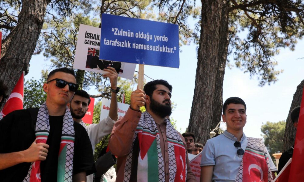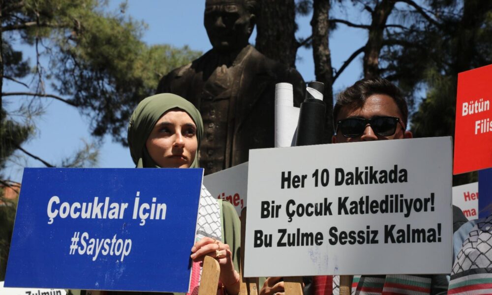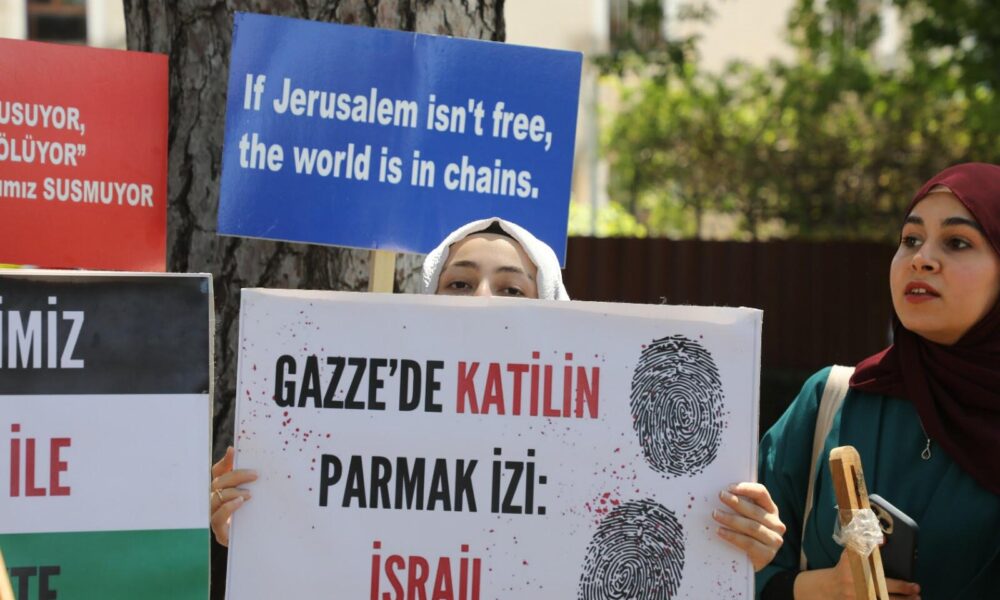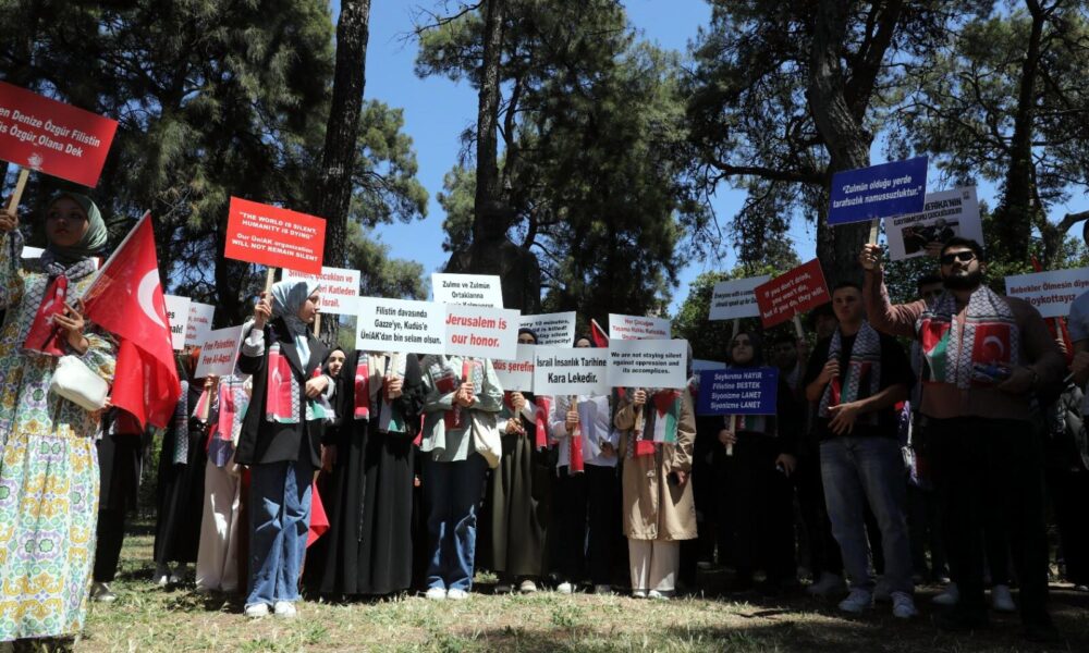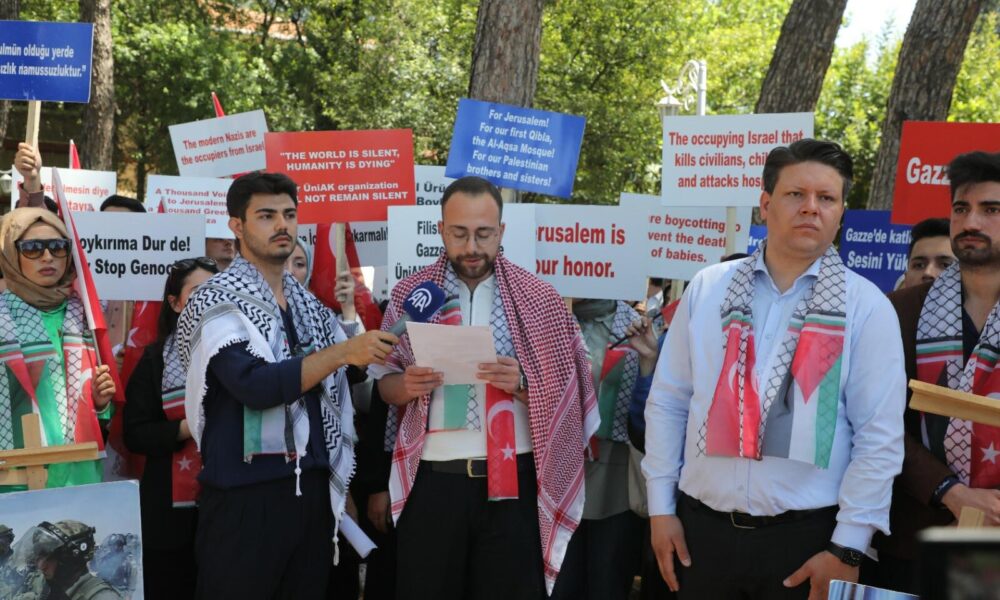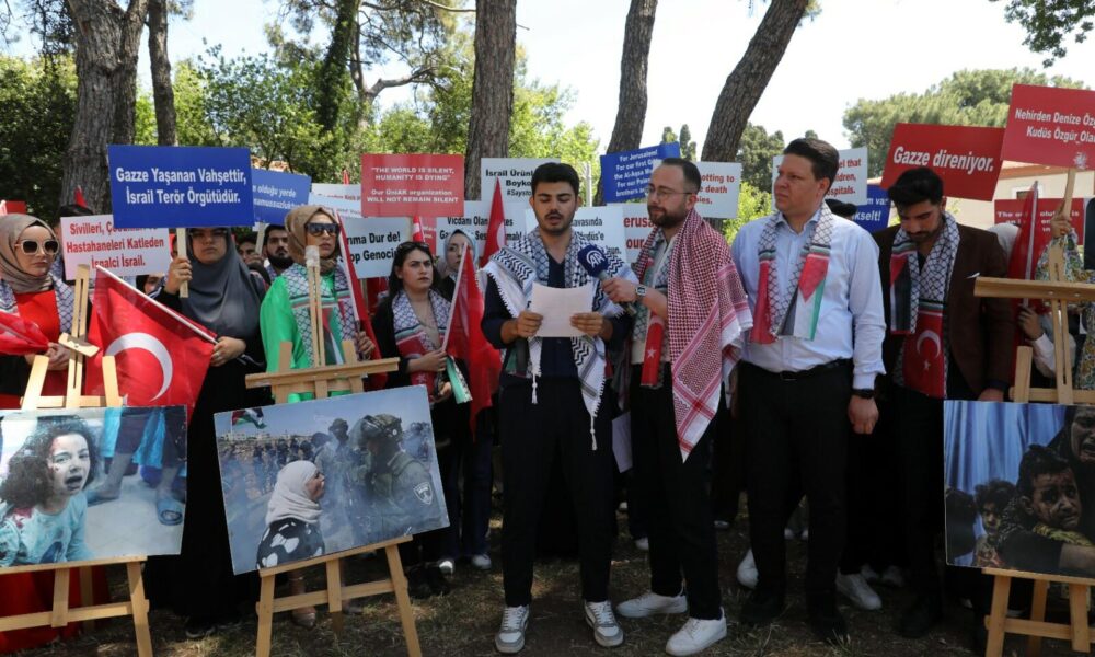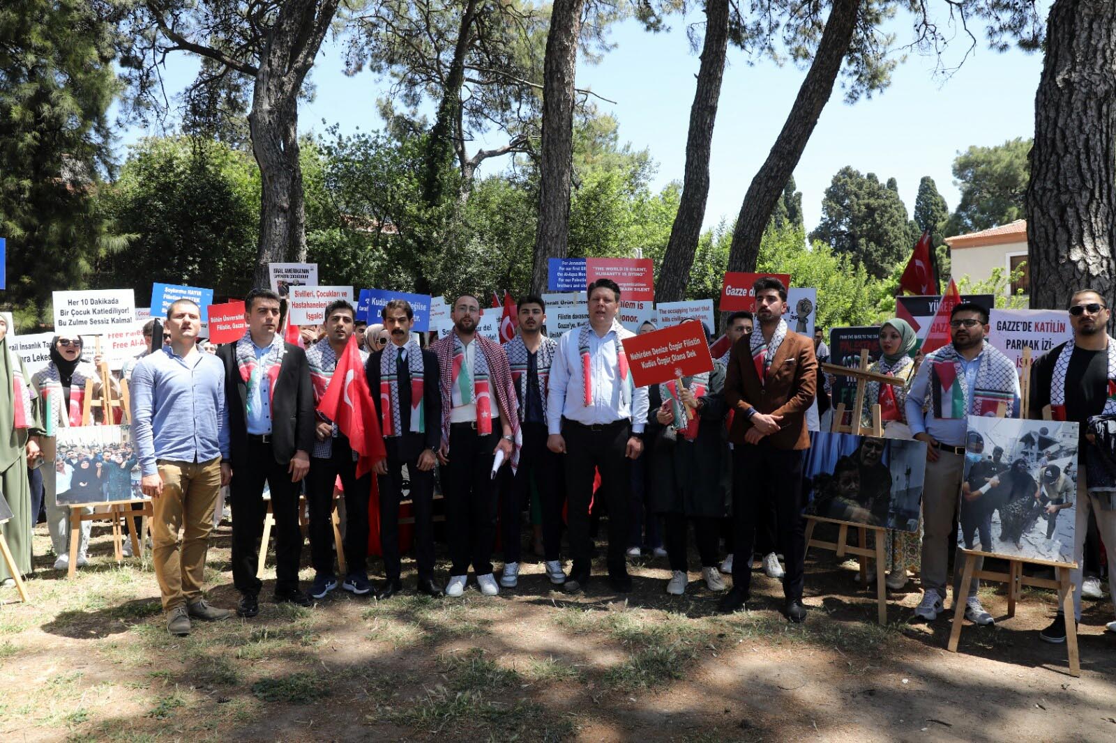Basın açıklamasını okuyan üniversite öğrencisi Mehmet Burak Keskin, “1948’den bugüne kadar milyonlarca masum ve mazlum Filistinliyi göç, kıtlık ve ölümle sınayan İsrail yayılmacılığı, 7 Ekim 2023 itibarıyla tarihin akışı içerisinde insanlığın utanç tablosu olarak değerlendirileceği bir soykırım halini almıştır. 209 gündür çocuk, kadın, erkek, genç, yaşlı, engelli ayırt etmeksizin 35 bin kişinin İsrail barbarlığı tarafından katledildiği binlerce kişinin evinden, yurdundan göçe sürüklendiği, kundaktaki bebeklerin bombardımanlar sonucunda enkaz altında can verdiği bir soykırım yaşanmaktadır” diye konuştu.