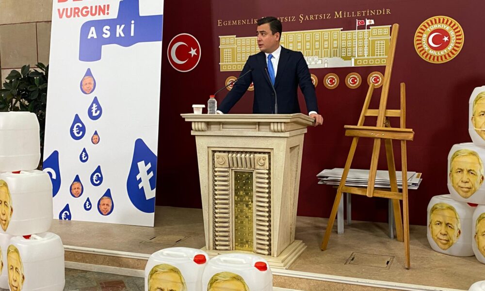 AK Parti Ankara Milletvekili Osman Gökçek, TBMMde yanında getirdiği su bidonlarıyla basın toplantısı düzenledi. Gökçek, Ankara Büyükşehir Belediye Başkanı Mansur Yavaşı eleştirerek, “Ankarada 6,5 yıldır bir damla yeni ek su kaynağı üretememiş, kaynaklarını; konserlerde, tabutlarda, karton bardaklarda maalesef heba etmiştir. Bugün Ankaralılar çamaşırlarını, bulaşıklarını yıkama noktasında ciddi sıkıntılar yaşıyor ve maalesef burada gördüğünüz su bidonlarına mahkum edilmiştir” dedi.