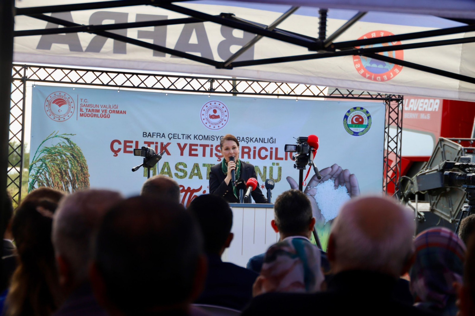 Burada konuşan AK Parti Genel Başkan Yardımcısı Çiğdem Karasaslan, mayıs ayında su ile tohumun buluşmasına şahitlik ettiklerini hatırlatarak, “Bugün de hasat günündeyiz. Samsun, tarım arazileriyle, ovalarıyla, tabiat varlığı ve doğa değerleriyle Türkiye’nin gözbebeğidir. Bu toprağın verimliliği kadar onu işleyen, alın teri döken, emek sarf eden çiftçilerimizin varlığı da bizler için çok kıymetli. Biz hayatın her alanında olduğu gibi sanayide, ticarette, eğitimde, sağlık da olduğu gibi tarımda da her zaman üreticimizin yanındayız. Son dönemde açıklanan yeni modelle birlikte artık çok daha planlı, çok daha programlı, çok daha verimli bir şekilde ürün alabileceğimiz ve bu hesabı da en başından yapabileceğimiz, devletimizin desteklerini maksimum seviyede de karşılık bulabileceği yeni bir sürece girmiş bulunuyoruz” dedi.
