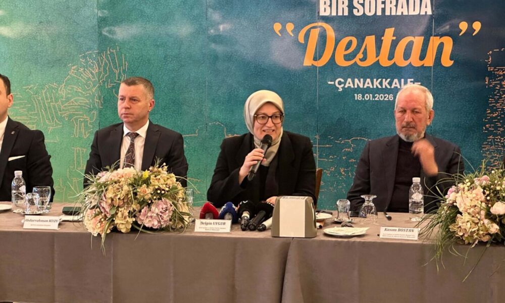 Bir Sofrada Destan programlarının Çanakkale’de 10’uncusunu gerçekleştirdiklerini söyleyen Uygur, “Bugüne kadar Türkiye’nin farklı şehirlerinde; farklı toplumsal kesimlerle, farklı hikayelerle, aynı samimiyet ve aynı hassasiyetle bir araya geldik. Çünkü bu toprakların hamurunda sevgi var, hoşgörü var, cana kıymet veren kadim bir irfan var. İşte biz o irfandan beslenerek çıktık yola. Balıkesir’de Bir Sofrada Demokrasi ile millet iradesinin vakarını temsil ettik. İstanbul’da Bir Sofrada ‘Teşkilat’ ile birlikte yol yürümenin bereketini paylaştık. Bursa’da Bir Sofrada ‘Rumeli-Balkan’ ile tarihimizin izini sürerken, kardeşliğimizin köklerini yeniden yeşerttik. Sivas’ta Bir Sofrada ‘Canlar’ ile inançların ve gönüllerin aynı sofrada buluşabildiğini gösterdik. Kırşehir’de Bir Sofrada ‘Ahiler’ ile emeğin, üretmenin ve paylaşmanın kıymetini hatırladık. Kahramanmaraş’ta Bir Sofrada ‘İhya ve İnşa’ ile yeniden ayağa kalkmanın, umudu diri tutmanın iradesini ortaya koyduk. İzmir’de Bir Sofrada ‘İlle de Roman’ ile gönülleri yan yana getirmenin, birlikte yaşama kültürünü güçlendirmenin değerini yaşadık. Şırnak’ta Bir Sofrada ‘Şehr-i Nuh’ ile kadim coğrafyamızın taşıdığı kardeşlik mirasını geleceğe bağladık. Konya’da Bir Sofrada ‘Vuslat’ ile hasretin muhabbete, buluşmanın hikmete dönüştüğü bir iklimi paylaştık. Bugün ise Çanakkale’de Bir Sofrada ‘Destan’ ile imanın iradeye, fedakarlığın kararlılığa dönüştüğü o büyük yürüyüşü aynı sofrada, aynı bilinçle sürdürüyoruz” ifadelerini kullandı.