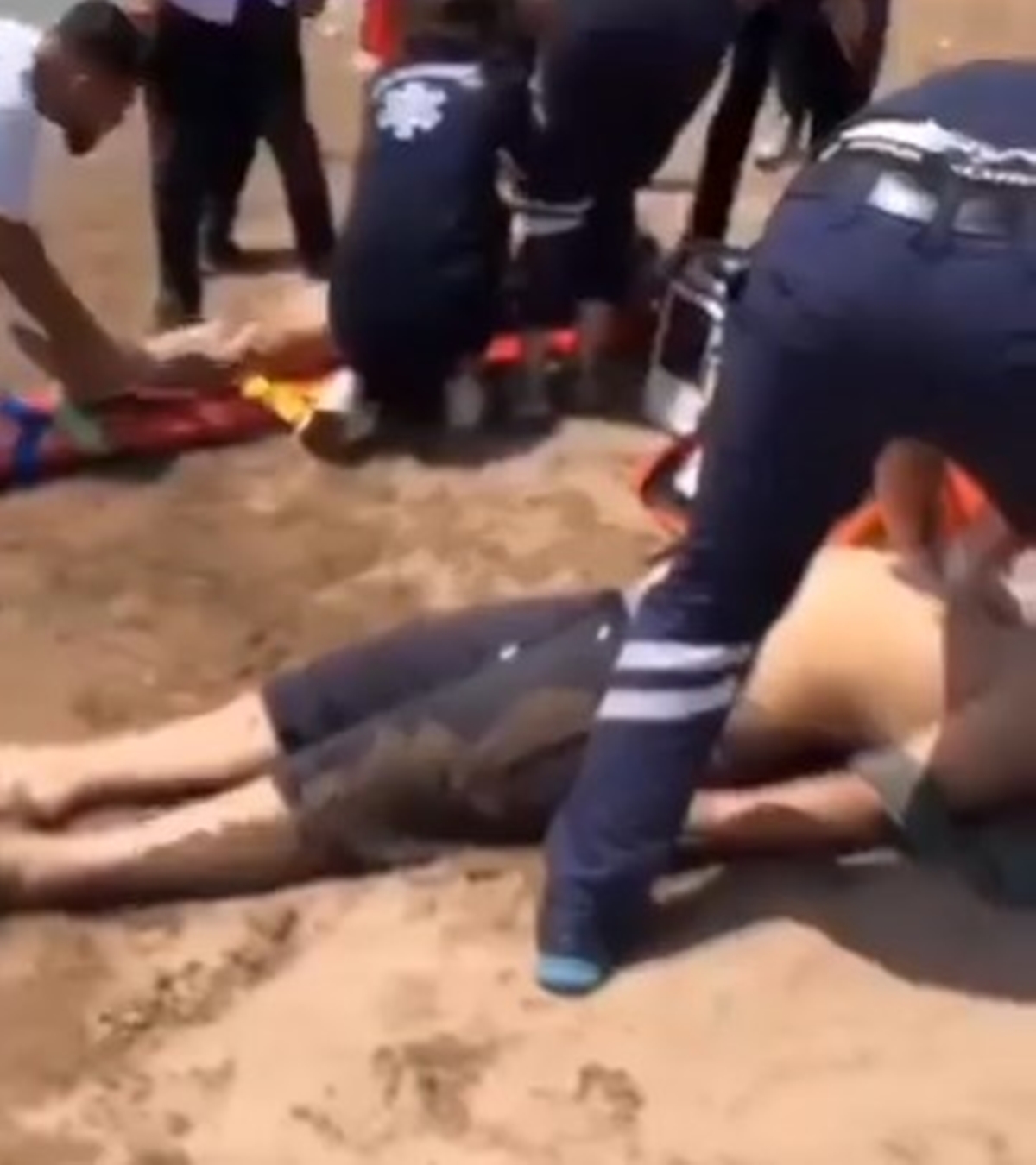 Akıntıya kapılan çocuğu kurtarmak isterken boğulma tehlikesi geçirdi