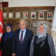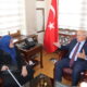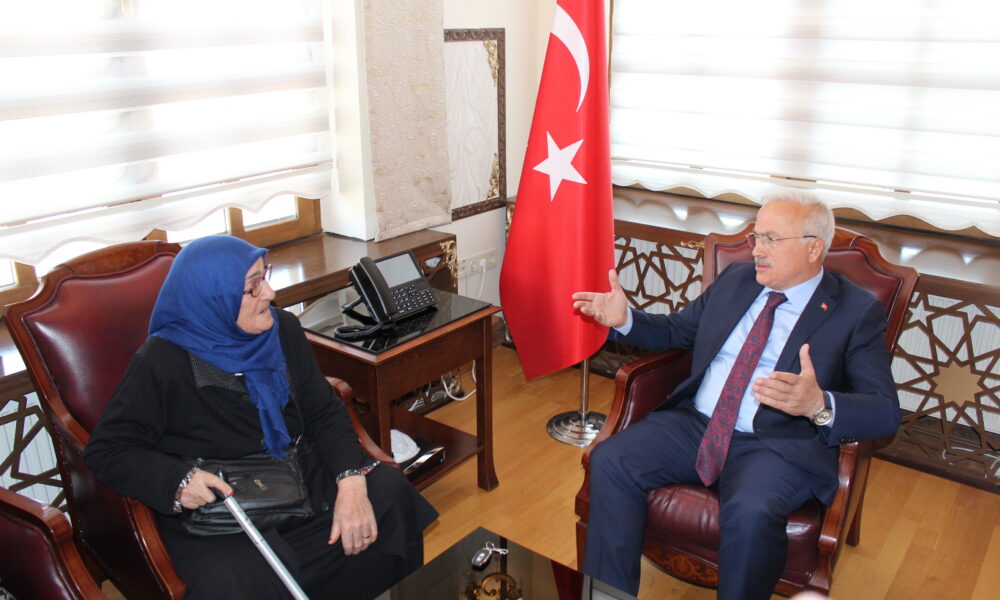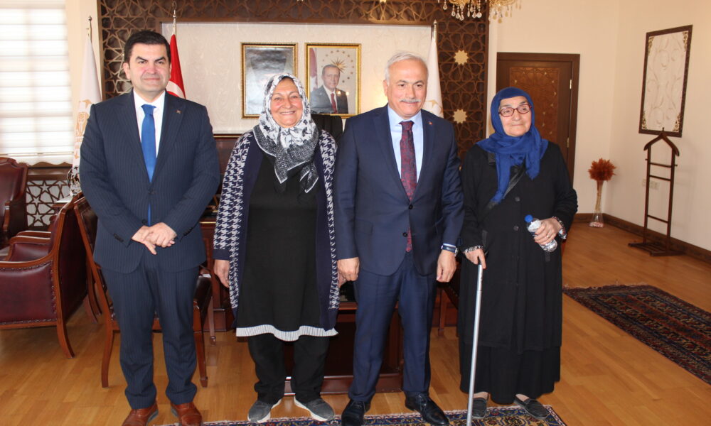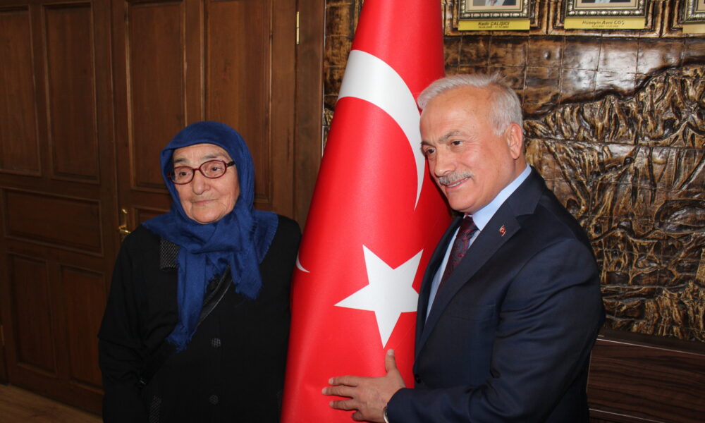 Aksaray Valisi’nden iş yeri önündeki bayrağı öpen bastonlu kadına hediye