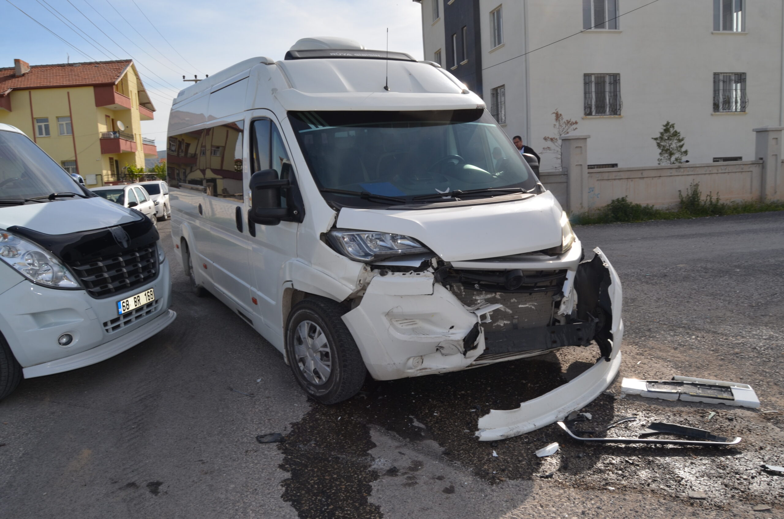 Kaza, saat 08.00 sıralarında Hürriyet Mahallesi 5524 Sokakta meydana geldi. Tekstil fabrikasına işçileri taşıyan Akın Çalışkan (46) yönetimindeki 68 S 0447 plakalı minibüs, kavşakta, Hakan Aytopun (22) kullandığı 68 ED 422 plakalı otomobille çarpıştı. Kazada, minibüsteki işçiler Lale Öğüt (39), Havva Uysal (34), Şura Arslan (35), Sevilay Koyak (20), Zeki Aytop (27), Sibel Yılmaz (29) ve Zeliha Oruç (22) yaralandı. İhbar üzerine kaza yerine polis ve sağlık ekipleri sevk edildi. Yaralılar, sağlık ekiplerince Aksaray Eğitim ve Araştırma Hastanesine kaldırıldı. Tedaviye alınan yaralıların sağlık durumunun iyi olduğu öğrenildi.