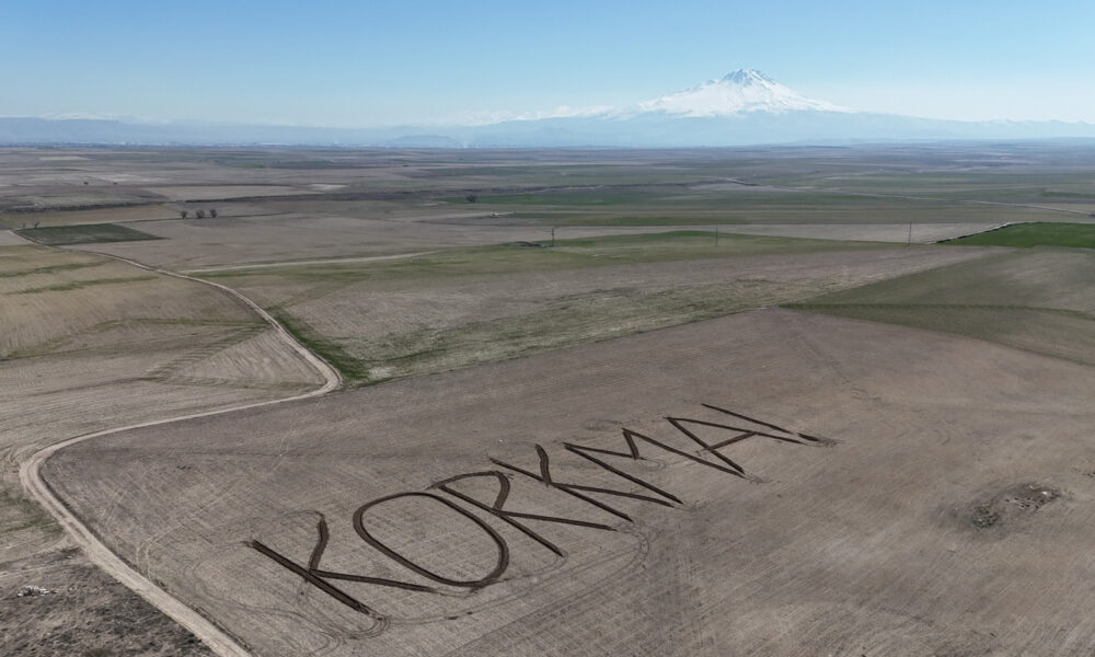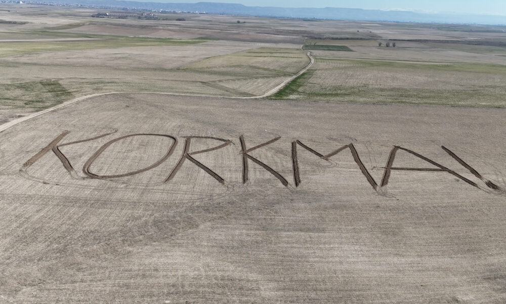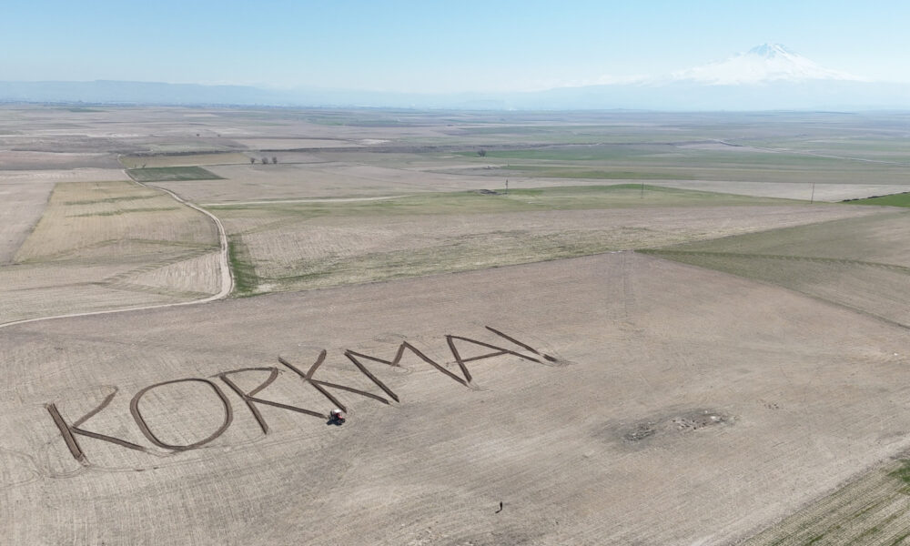 Aksaraylı çiftçi, tarlasına İstiklal Marşı’nın ilk kelimesi, ‘Korkma’ yazdı