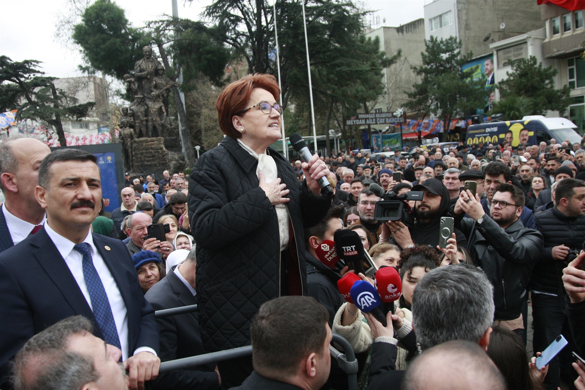 İYİ Parti Genel Başkanı Meral Akşener, “Sayın Erdoğana sesleniyorum. Emeklilere bayramda 7 bin lira ikramiye ve bütün emeklilere 10 bin lira zam vermen gerekiyor. En düşük emekli maaşının asgari ücret seviyesinde olması gerekiyor. 31 Marta kadar bunları yap; oylar senin olsun” dedi. Meral Akşener, yerel seçim öncesi Orhangazi ilçesinde esnaf ziyareti gerçekleştirdi. Akşenere, partisinin Bursa Büyükşehir Belediye Başkan adayı Selçuk Türkoğlu ile Orhangazi İlçe Belediye Başkan adayı İsmail Kaya da eşlik etti. Daha sonra vatandaşlara seslenen Akşener, öğretmen ile emeklilerin sesi olduğunu söyledi. 100 BİN ÖĞRETMENİN TAYİNİNİ YAPINSeçimlere 16 gün kaldığını belirten Akşener, Buradan Sayın Erdoğana sesleniyorum. Emeklilere bayramda 7 bin lira ikramiye ve bütün emeklilere 10 bin lira zam vermen gerekiyor. Son olarak en düşük emekli maaşının asgari ücret seviyesinde olması gerekiyor. 31 Marta kadar bunları yap; oylar senin olsun” dedi. Atanamayan öğretmenlere ilişkin de Akşener, “Atanamayan öğretmen ve gençlerimiz için mülakatı kaldıracaktınız. Cumhuriyetin yüzüncü yılında 100 bin öğretmenin tayinini hemen yapın. Atanamamış öğretmenlerin oyu senin olsun” diye konuştu.