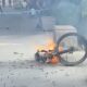 Aküsü tutuşan elektrikli bisikletteki yangını itfaiye söndürdü