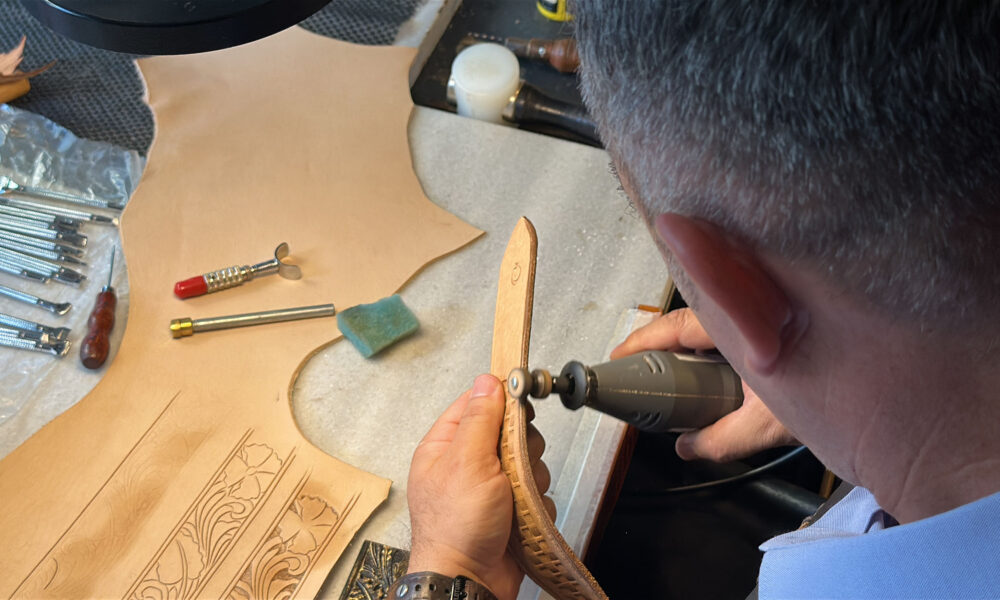 Tavşanlı ilçesinde Garp Linyitleri İşletmesi’nin İnsan Kaynakları Birimi’nde bilgisayar işletmeni olarak çalışan Hasan Hüseyin Karatepe, 5 yıl önce alışveriş merkezinden aldığı çakının kılıfını beğenmeyip, kendisi yapmak istedi. Tavşanlı Mesleki Eğitim Merkezi’nde çıraklık, kalfalık ve ustalık eğitimi alan Karatepe, daha sonra Tavşanlı Halk Eğitim Merkezi’nde aldığı 10 günlük oryantasyon eğitimiyle usta öğretici oldu. Bilgisayar işletmenliği işinden kalan zamanını 6 metrekarelik atölyesinde geçiren Karatepe, ilçede ilk kez açılan dericilik kursuyla yeni zanaatkarlar yetiştirmeye başladı.