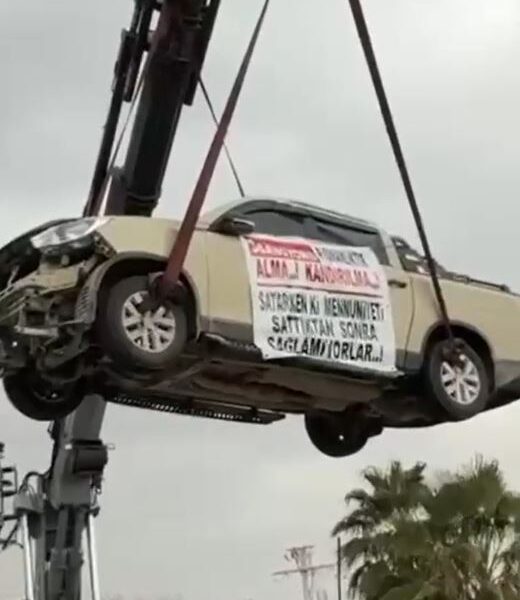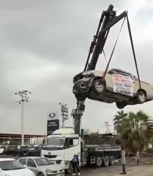 Olay, Kavaklı Mahallesi Turhan Cemal Beriker Bulvarı’nda bulunan bir otomobil bayisinde meydana geldi. Sıfır kilometre olarak satın aldığı kamyonetin hatalı olduğunu öne süren kişi, bayi yetkililerinin zararını gidermemesi üzerine eylem yaptı. Aracı vinçle bayinin önüne taşıtıp, yükseğe kaldırtan kişi, üzerine Alma, kandırılma. Satarken gösterilen memnuniyet, satıştan sonra sağlanmıyor yazılı pankart asarak sergiledi. Yaşananlar, çevredekiler tarafından cep telefonuyla görüntülendi. Bayi yetkilileriyle bir süre görüşen kişi, daha sonra eylemini sonlandırarak kamyonetini vinçten indirip bölgeden ayrıldı.