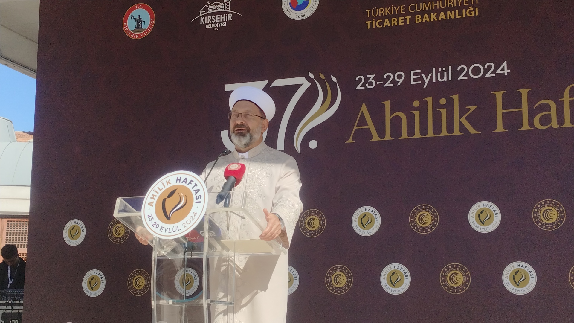 Diyanet İşleri Başkanı Ali Erbaş, 37nci Ahilik Haftası kutlamaları kapsamında Kırşehire geldi. İlk olarak Kırşehir Valiliğini ziyaret eden Erbaş, ardından Ahi Evran Külliyesine geçerek Şed Kuşatma Törenine katıldı. Yılın çırağı, kalfası ve ahisine şedler kuşatıldı. Burada açıklama yapan Diyanet İşleri Başkanı Ali Erbaş, “Hem Ahilik Haftası hem de Peygamber Efendimiz Mevlid-i Şerifini aynı zamanda idrak ediyoruz. İki güzel haftayı birlikte kutluyoruz elhamdülillah. Biraz önce burada Kuran-ı Kerim okuyan hocamızın okuduğu ayetler, müminlerin kurtuluş vesilelerini ifade eden ayetlerdir. Son iki ayetinde Ahilik Haftamıza işaret eden mesajlar var. Orada Rabbimiz buyuruyor ki, O kurtuluşa ulaşmak isteyen müminler, emanetlere riayet ederler ve sözlerinde dururlar. İşte ahiliğin özünde de bu vardır. Emanete riayet etmek. Peygamber Efendimiz, Sizler iman etmedikçe cennete giremezsiniz. Birbirinizi sevmedikçe de gerçekten iman etmiş olamazsınız buyuruyor. Onun için mümin olmanın özelliklerinden birincisi; söz verdiği zaman sözünde durmak, ikincisi konuştuğu zaman doğru söylemek, üçüncüsü emanete riayet etmek diye buyuruyor Peygamber Efendimiz. Bunların tam tersi de münafıklığın alametleri; konuştuğu zaman yalan söyler. Söz verdiği zaman sözünde durmaz. Kendisine emanet edilen şeye riayet etmez” dedi.