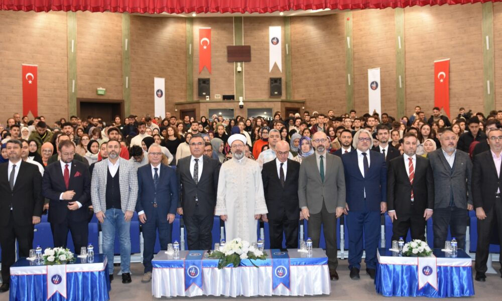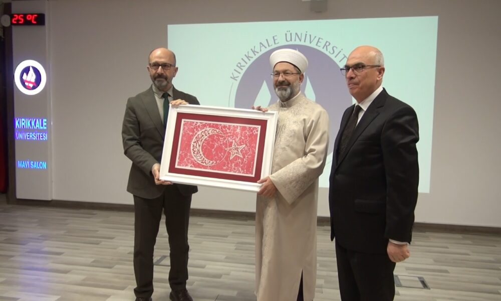 Erbaş, namaz sonrası Kırıkkale Üniversitesinde düzenlenen İslamın Rehberliğinde Bilgiden Bilince konferansında öğrencilerle buluştu. Konferansta konuşan Erbaş; ilim, bilgi, hikmet, hukuk ve ahlak medeniyetine sahip olduklarını anlatarak, Müslümanların asırlarca ilmin her alanında öncülük ettiğini ifade etti. Büyük bir inancın ve medeniyetin mensupları olduklarını vurgulayan Erbaş, “Gerçekleştirdiğiniz bütün faaliyetlerde, işlerde bunu asla unutmayınız. Büyük bir medeniyetin temsilcilerisiniz. Yüzyıllarca dünyaya hükmetmiş, adalet dağıtmış, diğer din ve milletler zor durumda kaldıklarında, yardım istediklerinde yardım eden büyük bir milletin evlatları, torunlarısınız. Bununla ne kadar övünsek, iftihar etsek azdır. Bu haslet, özellik her dönem ecdadımızda olmuş, bugün bizde de var. Mağdur, mazlum, zulme uğramış insanlar dünyanın her yerinde. Bu millet, mazlumun dini ve ırkı ne olursa olsun, zalimin dini ve ırkı ne olursa olsun her zaman zalimin karşısında, mazlumun yanında olur” dedi.