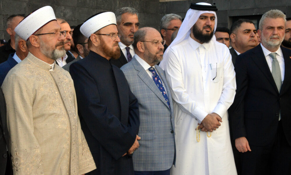 • Diyanet İşleri Başkanı Ali Erbaş (sol başta), Dünya Müslüman Alimler Birliği Genel Başkanı Prof. Dr. Ali Muhyiddin El-Karadaği (sol baştan ikinci), Katar Hayır Derneği Başkan Yardımcısı Ahmet Yusuf Fahri (sağ baştan ikinci) Kahramanmaraş’ta iş insanlarını