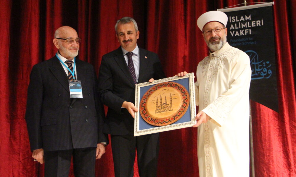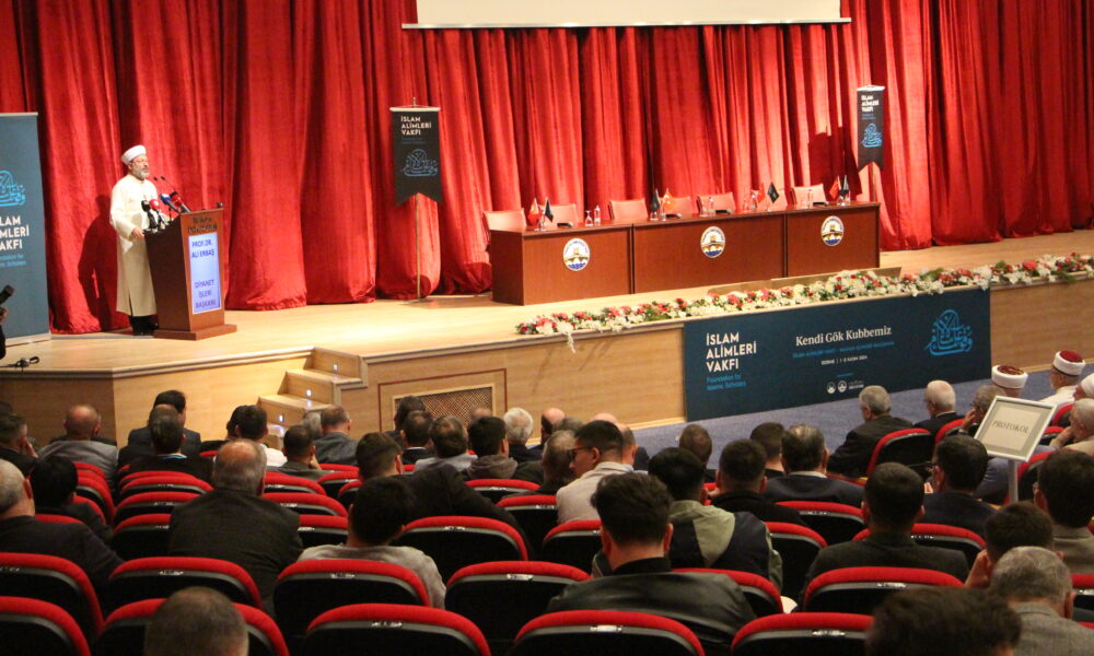 Diyanet İşleri Başkanı Ali Erbaş, programın açılışında yaptığı konuşmada; dinin, insanlığın bir arada huzur içerisinde yaşaması için ilahi bir kanun olduğunu söyledi. Erbaş, “Akıl sahiplerinin, peygamberin getirdiklerini kabule davet eden ilahi bir kanun. Dikkat ederseniz merkeze peygamberi koyuyor. Dinin tarifinde merkezde peygamber var. İşte bu mantıkla yüce Rabb’imiz, ilk yarattığı insanı aynı zamanda peygamber olarak görevlendirmiştir. Hazreti Adem, peygamber. Bütün peygamberler yeryüzünde iyiliği egemen kılmak, kötülüğü ortadan kaldırmak ya da kötülüğe engel olmak yani bizim hocalar olarak Kur’an-ı Kerimdeki görev tanımımız var ya. Buradaki o görevin ilk sahipleri peygamberler. Peygamberler bu vazifelerini yaptı. İşte o peygamberlerin sonuncusu Hazreti Muhammed Mustafa aleyhissalatü vesselam efendimiz ilimle vazifesine başladı. Öğrenmekle, öğretmekle, kalemle başladı. Bu inen ilk sure, ilk ayetler. İşte buradan bizim alacağımız mesaj, bu medeniyet ilim medeniyetidir, alimlerin medeniyetidir. Alimlerin ortaya koyduğu o medeniyetin mensupları olarak demek ki bizlerin hepimizin buna sahip çıkmamız gerekir. Demek ki kitap ve sünnet bizim asla vazgeçemeyeceğimiz, asla ihmal etmememiz gereken iki önemli unsur, bize Peygamberimizin emaneti. Dinin temeli kitaba ve sünnete dayanmalı” dedi.