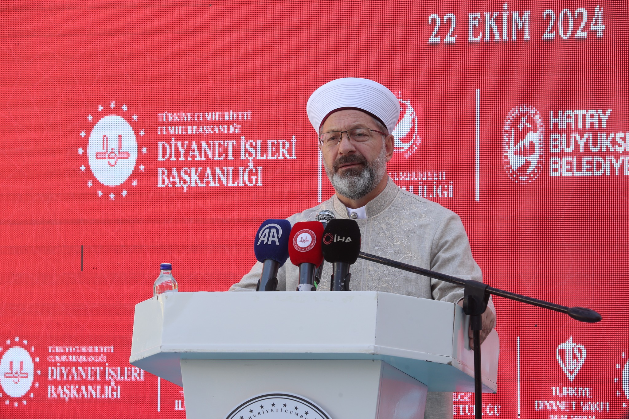 Ali Erbaş, devletin büyük ve güçlü olduğunu belirterek, “Camiler bir taraftan, minareler, binalar bir taraftan yapılıyor, Allah’a ne kadar şükretsek azdır. Milletimizin birliği, beraberliği, kardeşliği, dayanışmasıyla ne kadar iftihar etsek azdır. İşte bizim milletimize yakışan da budur. Biz ilhamımızı Kur’an’dan, Peygamber efendimizin hadis-i şeriflerinden alırız. Kumbaralarında harçlıklarını toplayan çocuklarımızın medeniyetimizden, büyüklerinden öğrendiği o ruhla, o küçücük harçlıklarını bile deprem bölgelerine gönderdiklerine şahit olduk. Unutulmaz örnekler yaşadık. İlk saatlerden itibaren Diyanet İşleri Başkanlığımız dahil devletimizin bütün kurumları buralardaydı. 15 bin hocamız deprem bölgesinde vatandaşlarımızın yanında oldular ve onların çocuklarına, gençlerine manevi destek verdiler. Camilerimizin dış kısmı, binalar, duvarları her şeyi yapıldı. Sadece ibadet için kullanmayacağız camilerimizi bir mektep olarak kullanacağız. Camiler medeniyet merkezlerimizdir” diye konuştu.