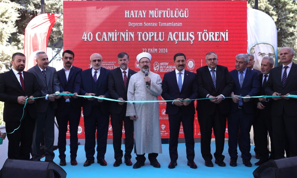 Diyanet İşleri Başkanı Ali Erbaş, bir dizi ziyaret için geldiği kentte ilk olarak Vali Mustafa Masatlıyı ziyaret etti. Daha sonra Türkiye Diyanet Vakfının (TDV) çalışmalarını inceleyen Erbaş, ardından Yahyalılı Mustafa Koyuncu Camisinde düzenlenen toplu açılış törenine katıldı. Hayırseverlerin de desteğiyle tamamlanan 40 caminin açılışında konuşan Erbaş, depremde çok sayıda caminin yıkıldığını ve camilerden ezan sesinin gelmediğini hatırlattı. Erbaş, “Antakya’da vatandaşlarımızdan birisi evinin balkonuna çıktı ve oradan ezan okudu, gözyaşlarıyla seyretmiştik o haberi. Bir şehrin ezana ne kadar ihtiyacı olduğunu, o kardeşimizin balkonuna çıkarak okuduğu ezanla fark etmiştik. İşte bugün emeği geçen herkesten Allah razı olsun” dedi.