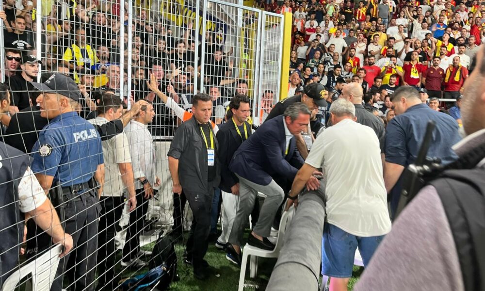 Ali Koç’a yabancı madde isabet etti; maç durdu (EK FOTOĞRAFLAR)