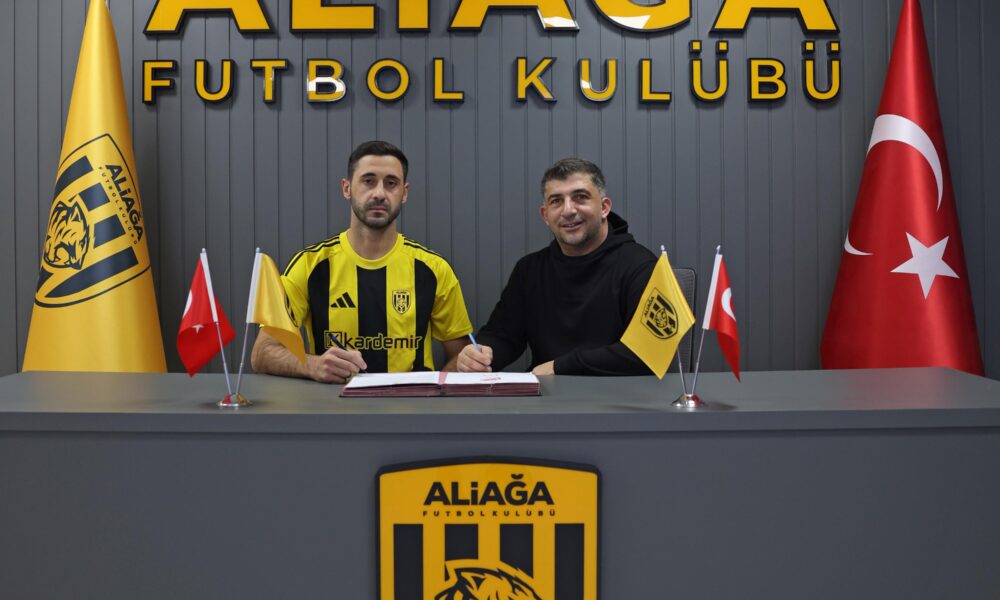 Aliağa FK'da Tahir de imzayı attı. (Fotoğraf: İzmir DHA)