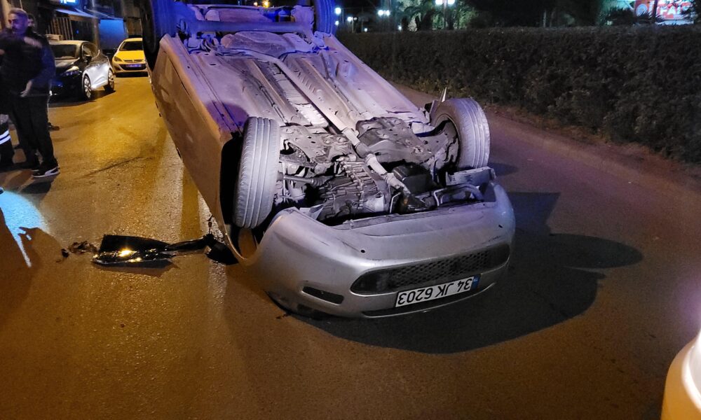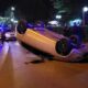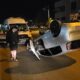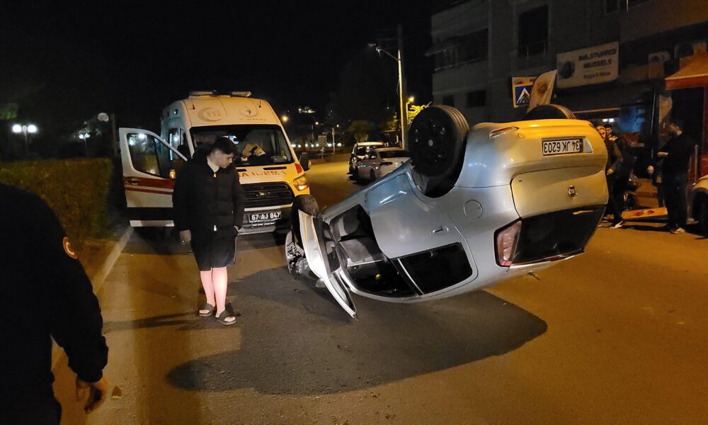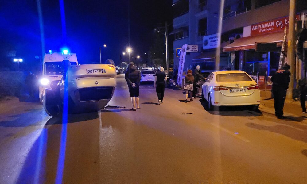 Alkollü sürücünün kullandığı otomobil park halindeki araca çarpıp takla attı