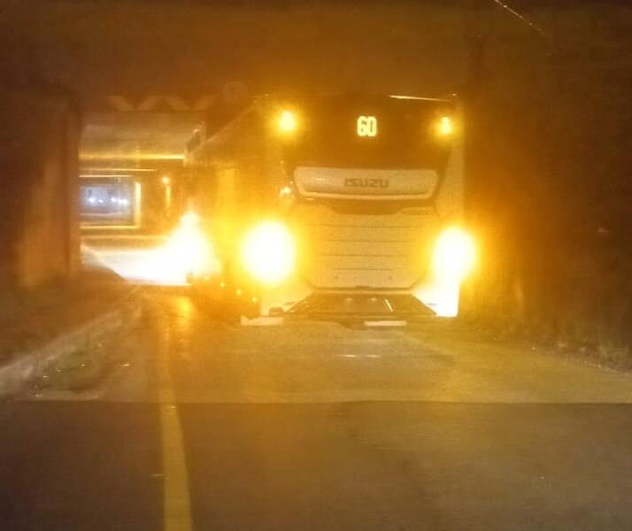 BOLU’da, sürücüsü yakıt almaya giderken 3 metre yüksekliğindeki alt geçitte sıkışan yolcu otobüsü, lastiklerinin havası indirilerek kurtarıldı.Olay, gece saatlerinde Küpçüler TOKİ konutları mevkinde bulunan alt geçitte meydana geldi. G.M.S idaresindeki 34 G 87645 plakalı yolcu otobüsü, Paşaköy mevkisinde bulunan gişelerden çıkarak kent merkezine doğru hareket etti. Yakıt için istasyona giden sürücü, daha kısa olması amacıyla alt geçidi kullanmak istedi. Yolcu otobüsü, 3 metre yüksekliğindeki alt geçitten geçerken sıkıştı. Sürücünün ihbarı üzerine olay yerine polis ve itfaiye ekibi sevk edildi. Ekipler yolcu otobüsünü lastiklerinin havasını indirerek sıkıştığı yerden çıkardı.