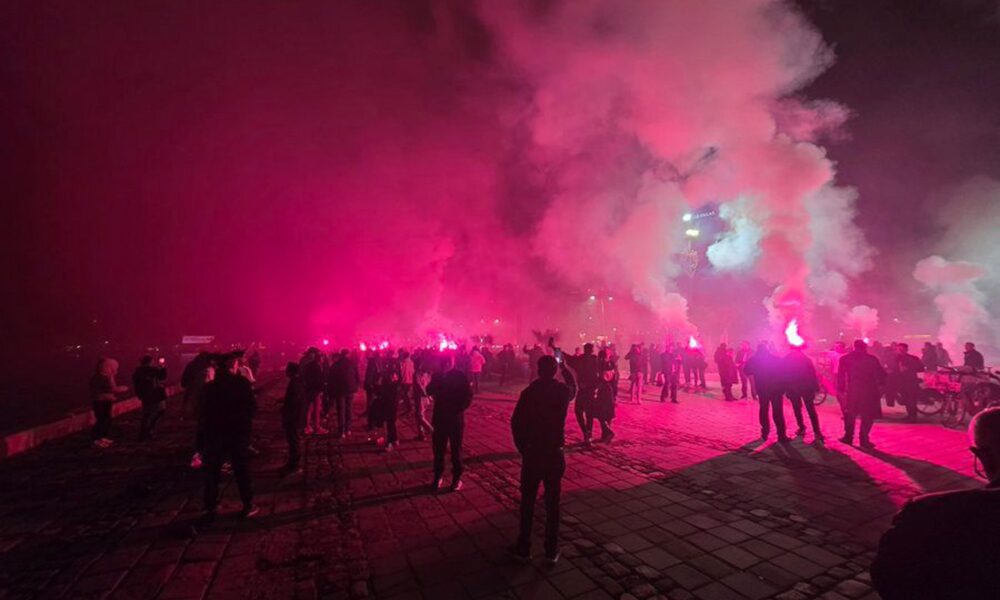 Altay 112'nci kuruluş yıldönümünü Cumhuriyet Meydanı'nda törenle, Gündoğdu Meydanı'nda meşale yakarak kutladı. (Foto: İZMİR, DHA)-