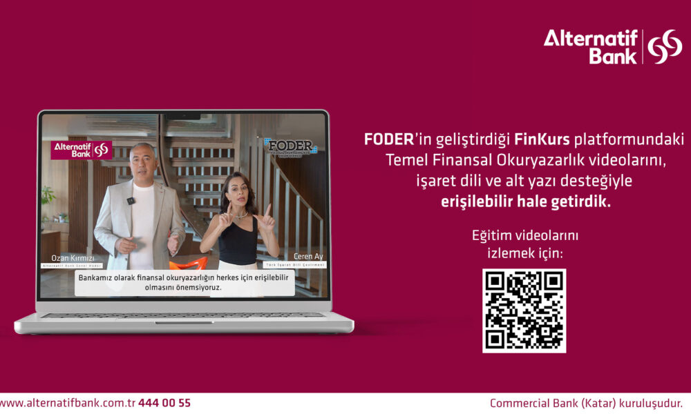 “Alternatif Bank olarak, toplumun tüm kesimlerine eşit fırsatlar sunan, kapsayıcı ve sürdürülebilir bir bankacılık anlayışını benimsiyoruz. Bu yaklaşımımızın önemli bir parçası da finansal bilginin herkes için erişilebilir hale gelmesi. Çünkü biz, finansal bilginin yalnızca bireysel gelişimi değil, aynı zamanda daha kapsayıcı ve güçlü bir ekonomik yapıyı da desteklediğine inanıyoruz. FODER ile gerçekleştirdiğimiz bu iş birliği, Engelsiz Bankacılık vizyonumuz doğrultusunda attığımız değerli adımlardan biri. Projenin ilk aşamasında, FinKurs platformunda yer alan finansal okuryazarlık eğitim serisini işitme engelli bireylerin de rahatlıkla takip edebileceği şekilde işaret dili ve alt yazı desteğiyle erişime sunduk. Bu iş birliğiyle birlikte, finansal okuryazarlığın herkes için eşit, erişilebilir ve sürdürülebilir olmasına yönelik önemli bir adım atmış olduk.