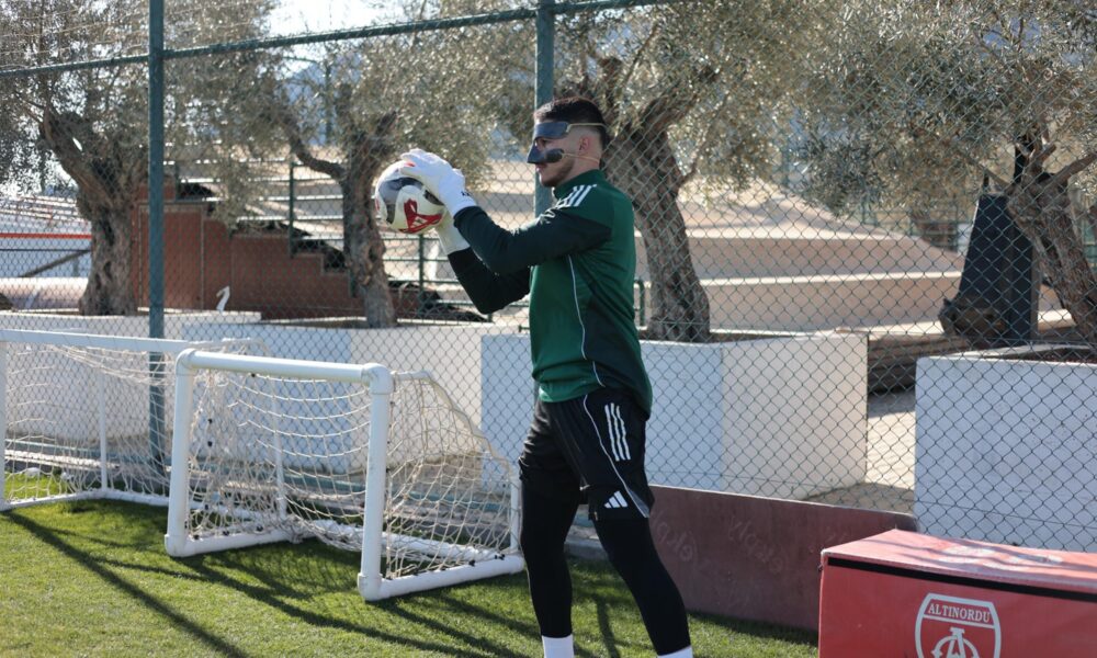 • Altınordu'da kaleci Efe Kaan, kırık burunla İskenderunspor maçını tamamladı. (Foto: İZMİR, DHA)-