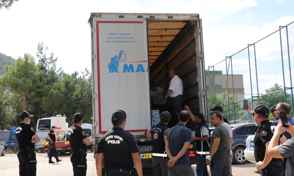 Alüminyum yüklü TIR’ın dorsesinden 23 kaçak göçmen çıktı