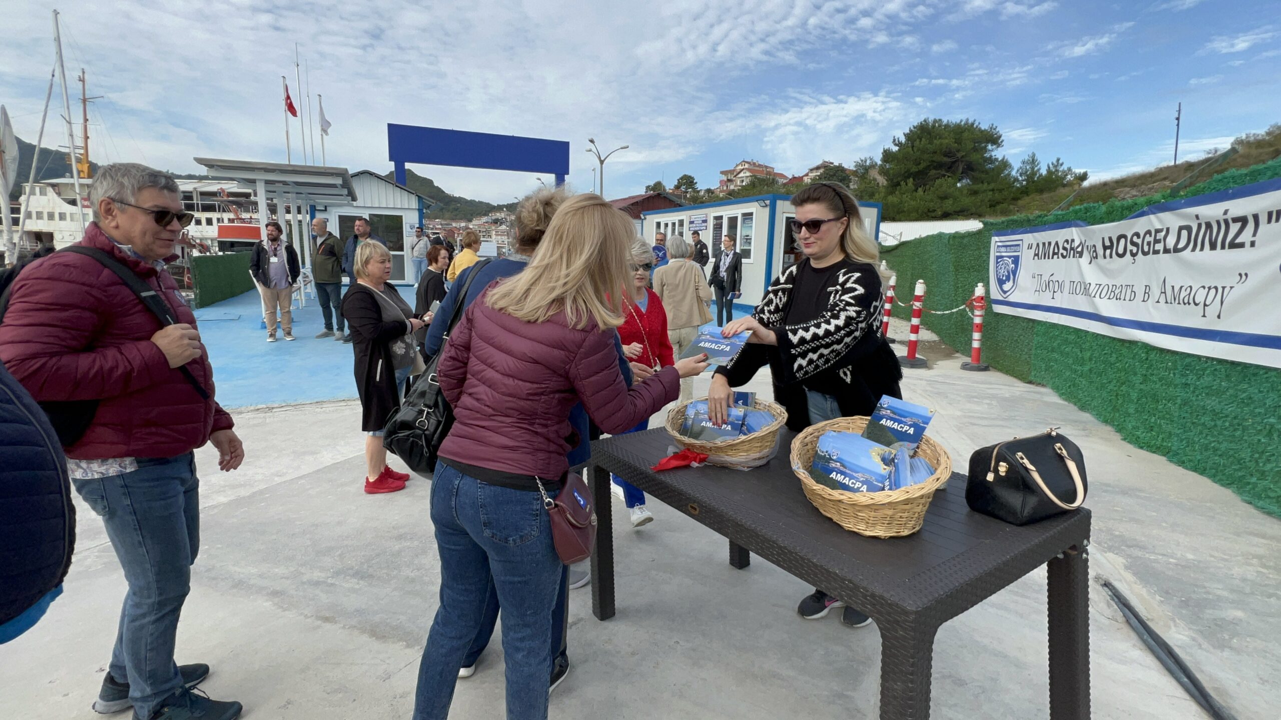 Amasra’ya 5’inci kez gelen ‘Astoria Grande’ isimli kruvaziyer, ağustos ayında 327 yolcu ile gelirken, ikinci ziyaretinde 779, üçüncü ziyaretinde 843, dördüncü ziyaretinde 796 ve bugün de 613 yolcusu ile geldi. 3 ayda 5 sefer düzenleyen gemi, şu ana kadar 3 bin 358 yolcu getirmiş oldu. Daha önceden Amasra’ya gelin olarak gelen 4 Rus vatandaşı, tarihi yerleri anlatarak, gemideki profesyonel rehberlere yardımcı oluyor. Gemi, kasım ayına kadar Amasra’ya 6 kez daha tur düzenleyecek.
