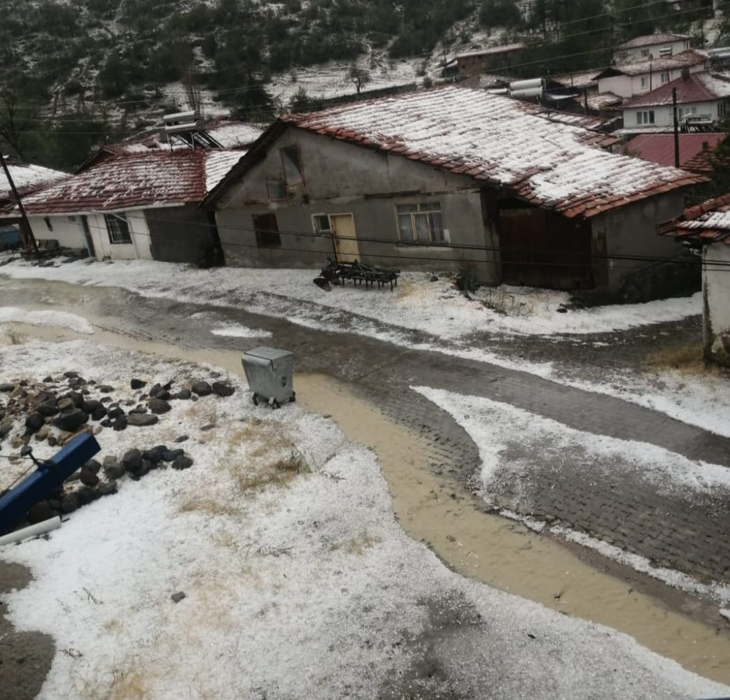 • Amasya'nın Gümüşhacıköy ilçesinde dolu yağışı etkili oldu. Fotoğraf: Amasya,(DHA)