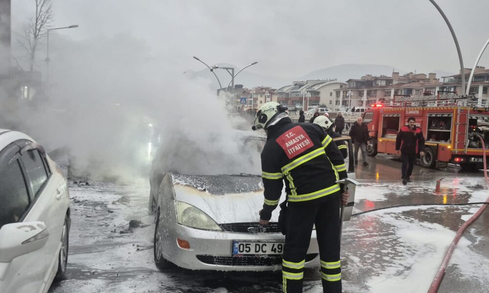 Amasya’da seyir halindeyken alev alan otomobil yandı