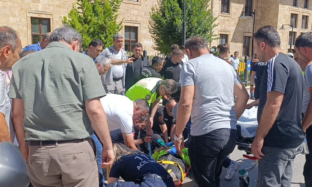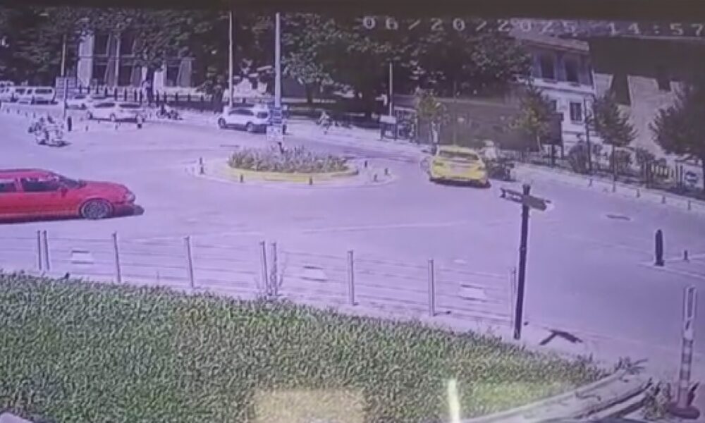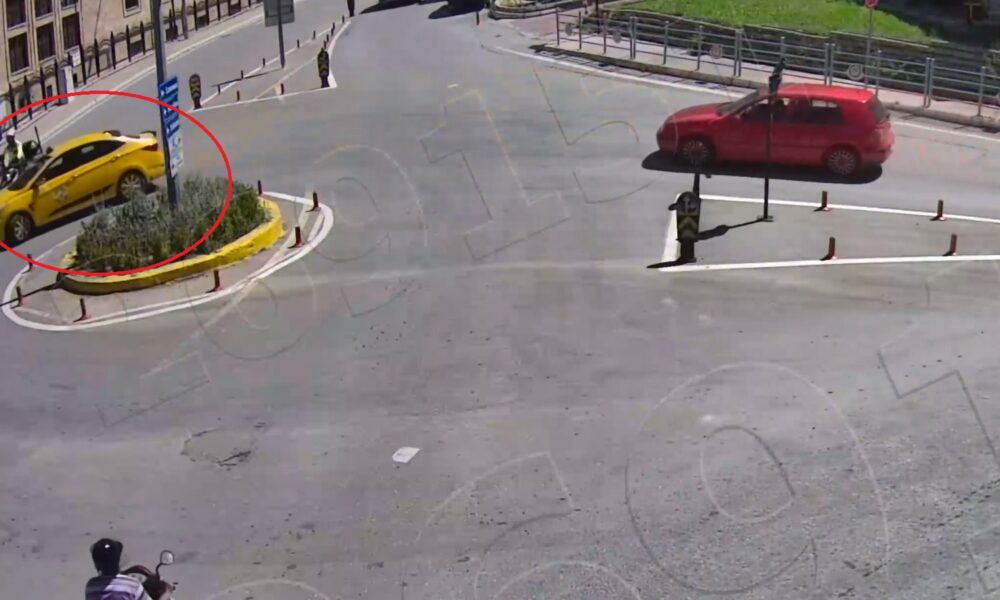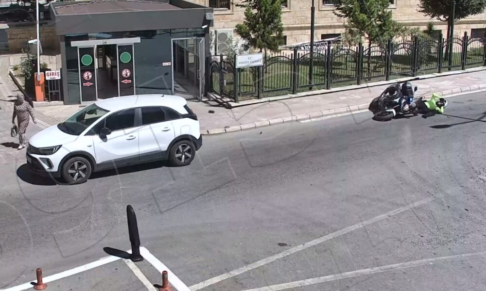 Amasya’da taksinin motosikletli polise çarptığı kaza kamerada
