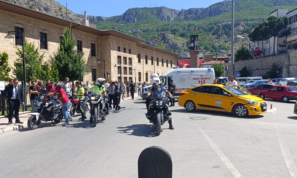 Kaza, saat 15.00 sıralarında, Ferhat Tüneli Valilik çıkışındaki kavşakta meydana geldi. Mustafa G. yönetimindeki 05 T 0098 plakalı taksi, kavşaktan döndüğü sırada, seyir halinde olan motosikletli trafik polisi Feyzullah A.’ya çarptı. Savrulan polis, yola düştü. İhbarla bölgeye sağlık ekipleri sevk edildi. Kazayı duyan meslektaşları da olay yerine gelip müdahalede bulundu. Sağlıkçıların ilk müdahalesini kaza yerinde yaptığı trafik polisi Feyzullah A., ambulansla Amasya Üniversitesi Sabuncuoğlu Şerefeddin Eğitim ve Araştırma Hastanesi’ne kaldırıldı. Tedaviye alınan polisin sağlık durumunun iyi olduğu bildirildi. Güvenlik kamerasına yansıyan kazaya ilişkin soruşturma başlatıldı.