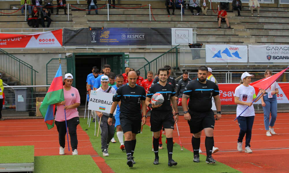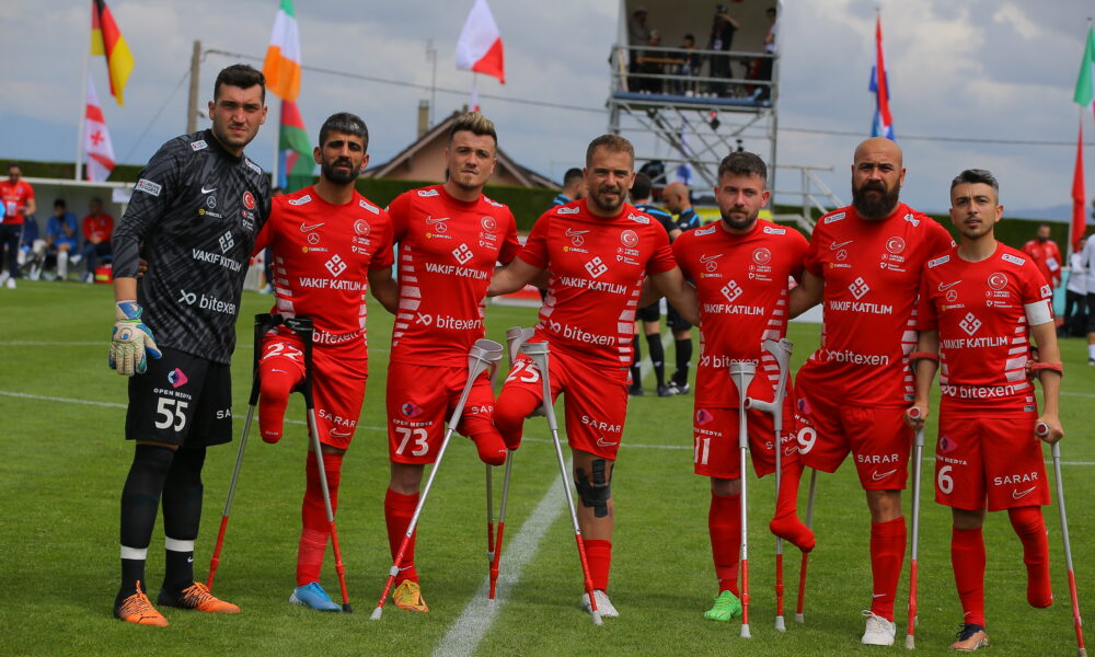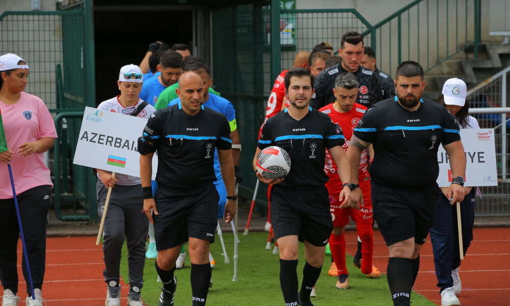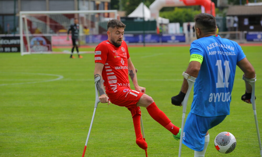 Avrupa ve dünya şampiyonu Ampute Futbol Milli Takımı, Fransanın Haute-Savoie kentinde düzenlenen EURO 2024te C Grubu ikinci maçında Azerbaycan ile karşı karşıya geldi. Camille Fournier Stadyumundaki mücadele hızlı başlayan ay-yıldızlılar, 2. dakikada Ömer Güleryüz ile 1-0 öne geçti. 5. dakikada Muhammet Yeğenin golüyle farkı 2ye çıkaran Türkiye, 6. dakikada Kemal Güleşin golüyle skoru 3-0a getirdi. 11. dakikada paslaşarak kullanılan serbest vuruşta Ömer Güleryüz fileleri havalandırarak skoru 4-0 yaptı. 15. dakikada sol kanattan kullanılan serbest vuruşta topla buluşan Muhammet Yeğen sert bir vuruşla topu ağlara gönderdi ve Türkiye 5-0 öne geçti. Azerbaycan 21. dakikada attığı golle farkı 4e indirdi. 23. dakikada Ömer Güleryüz hat-trick yaparken skor 6-1 oldu. 25. dakikada Azerbaycanın kendi kalesine attığı golle milliler soyunma odasına 7-1 önde girdi.