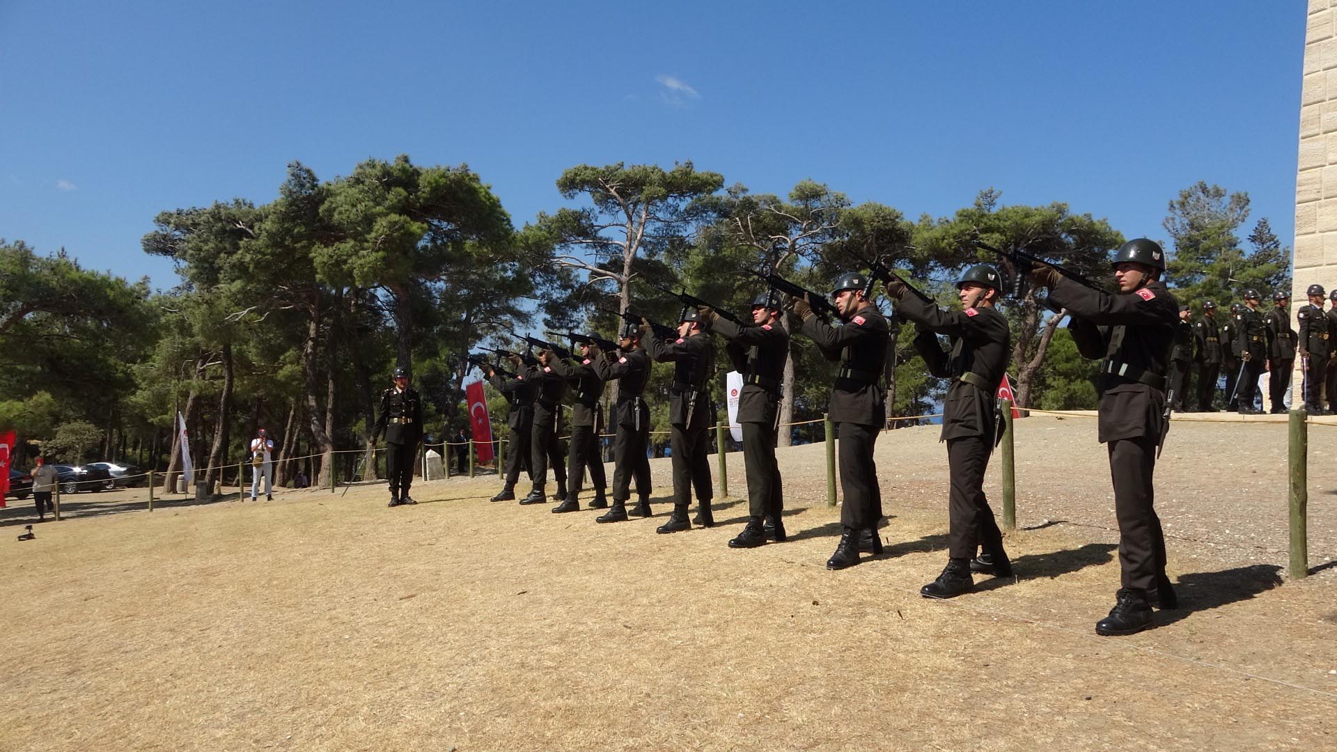 Türk Silahlı Kuvvetleri adına konuşan Gelibolu 2nci Kolordu Komutanlığında görevli Kurmay Binbaşı Türker Ersin Özdemir, “Çanakkale savaşlarının unutulmaz kahramanı, Anafartalar Grup Komutanı Albay Mustafa Kemalin dehası ve kahramanlığına, Mehmetçik tarafından güven bağının kurulması ve hayranlıkla tanık olunması, aynı zamanda milli mücadelenin doğal zamanda milli mücadelenin doğal, liderini de belirlemiştir. Çanakkalede devleşen, gönüllerimizde ebedileşen ve tarihin altın sayfalarında destanlaşan yüce kahramanlar; huzur içinde uyuyunuz, geçit vermediğiniz bu vatan emin ellerdedir. Uğruna hiç düşünmeden canlarını feda ettiğimiz bağımsızlık ve özgürlüğümüzün sembolü şanlı bayrağımız, bu aziz vatan toprakları üstünde sonsuza kadar dalgalanacaktır” dedi.