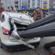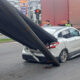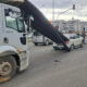 Ani fren yapan kamyonun üzerinden kayan inşaat demirleri, otomobile saplandı
