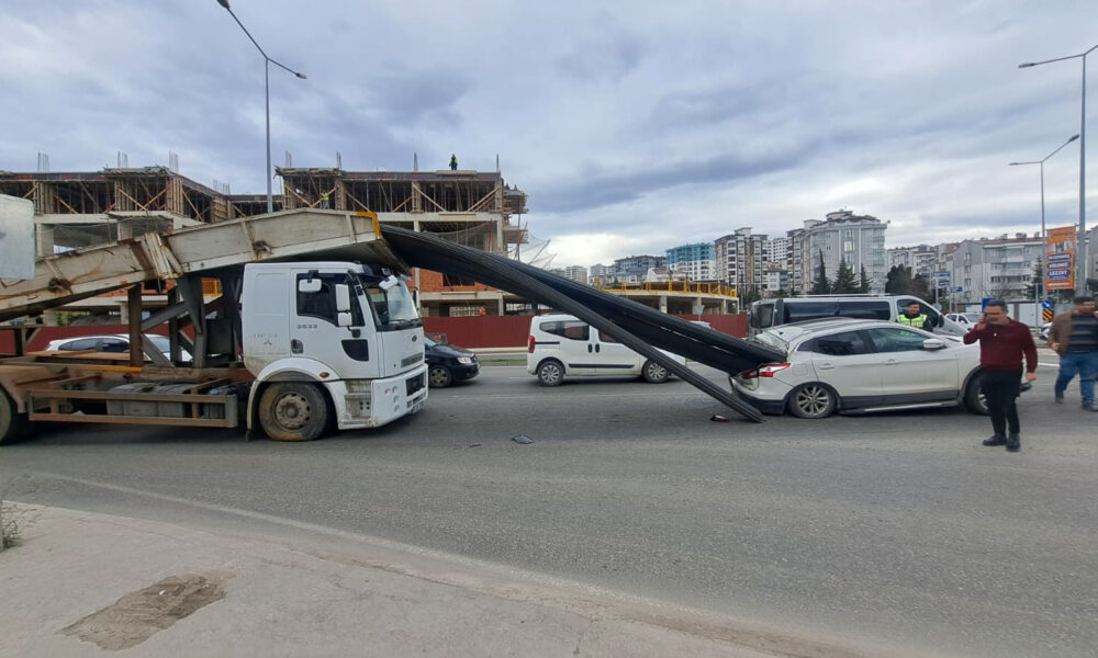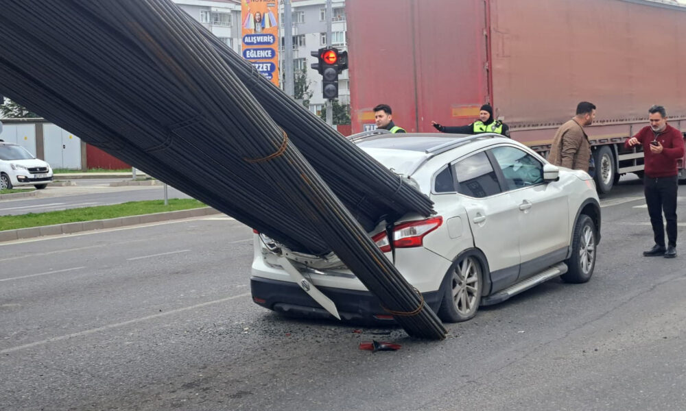 Kaza, Altınordu ilçesi Karşıyaka Mahallesi Şehit Yalçın Yamener Bulvarı’ndaki Kuğukent Kavşağı’nda meydana geldi. A.H.A., kullandığı 55 GM 378 plakalı inşaat demiri yüklü kamyonla kırmızı ışığa geldiğinde ani fren yaptı. Bu sırada kamyonun kasasındaki istiflenmiş haldeki bulunan inşaat demirleri, sarsıntıyla birlikte öne doğru kaydı. Demirler, A.Y. yönetimindeki 52 ABB 650 plakalı otomobilin arka camından içeri girdi. Çevredekilerin ihbarı üzerine olay yerine ekipler sevk edildi. Araçta büyük çapta hasar meydana gelirken, içindekiler yara almadan kurtuldu.