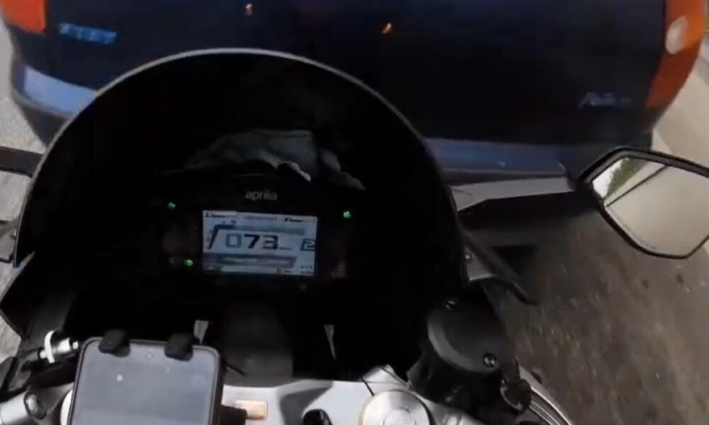 Aniden önüne kıran otomobile çarpan motosikletin sürücüsü yere düştü; kaza kask kamerasında