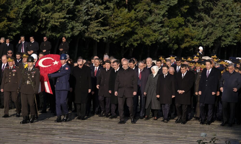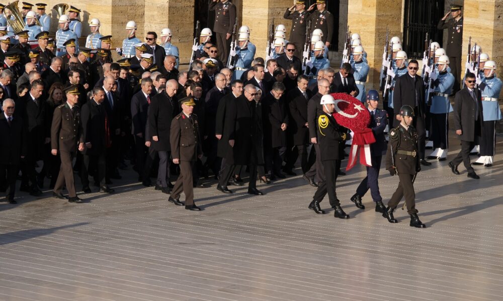 Gazi Mustafa Kemal Atatürkün 86ncı vefat yıl dönümü nedeniyle Anıtkabirde anma töreni düzenlendi. Törene Cumhurbaşkanı Recep Tayyip Erdoğanın yanı sıra Türkiye Büyük Millet Meclisi Başkanı Numan Kurtulmuş, Cumhurbaşkanı Yardımcısı Cevdet Yılmaz, CHP Genel Başkanı Özgür Özel, MHP Genel Başkanı Devlet Bahçeli, İYİ Parti Genel Başkanı Müsavat Dervişoğlu, bakanlar, Genelkurmay Başkanı Orgeneral Metin Gürak, kuvvet komutanları, yüksek yargı üyeleri ve askeri personel katıldı. Cumhurbaşkanı Erdoğan ve beraberindekiler, Aslanlı Yoldan yürüyerek, Atatürkün mozolesine geldi. Cumhurbaşkanı Erdoğan, üzerinde ay yıldız bulunan çelengi Atatürkün mozolesine bıraktıktan sonra saygı duruşunda bulunularak, İstiklal Marşı okundu. Saat 09.05te çalan sirenle birlikte Anıtkabirde hayat durdu.