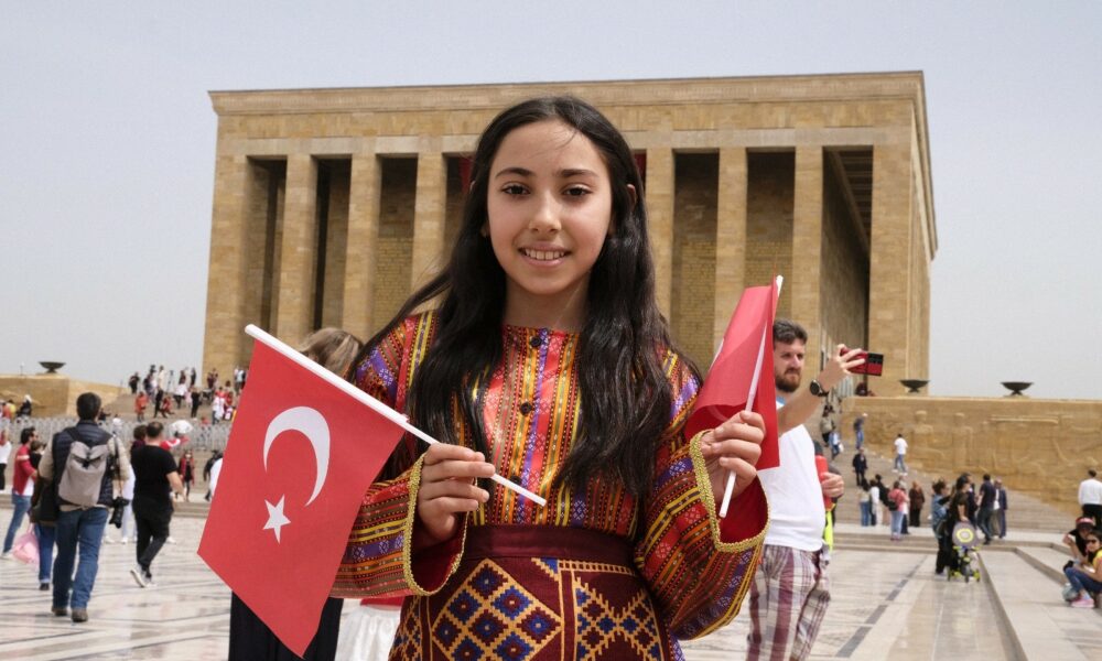Okuldaki 23 Nisan gösterisinin ardından Anıtkabire geldiğini belirten Ecrin Coşkun (12) ise “Bugün okulda gösterim vardı. Osmaniye yöresine ait kıyafetler giydim. Bugün bizim için çok özel ve güzel bir gün. Büyüklerin de içindeki çocukları yaşaması için güzel bir gün. Ata’m huzurla yatsın” diye konuştu.