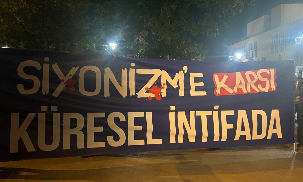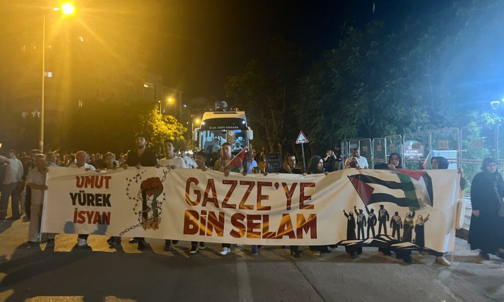 ​Ankara Filistin Dayanışma Platformu, Hamas Siyasi Büro Başkanı İsmail Haniye’nin Tahranda suikasta uğraması sonucu şehit edildiği saldırıyı protesto etti. Platform tarafından ‘Nehirden denize özgür Filistin’ sloganıyla düzenlenen yürüyüşe, AK Parti 28ini Dönem İstanbul Milletvekili Yücel Arzen Hacıoğulları ile kentteki sivil toplum kuruluşlarının temsilcileri ve vatandaşlar katıldı. Tuğba Altınok Camisi’nde bir araya gelen grup, ellerinde afişler, Türk ve Filistin bayraklarıyla ABD Büyükelçiliğine kadar slogan atarak yürüdü. Programa telefon bağlantısıyla Katar’dan bağlanan İsmail Haniye’nin oğlu Abdusselam Haniye bir araya gelen gruba seslendi.